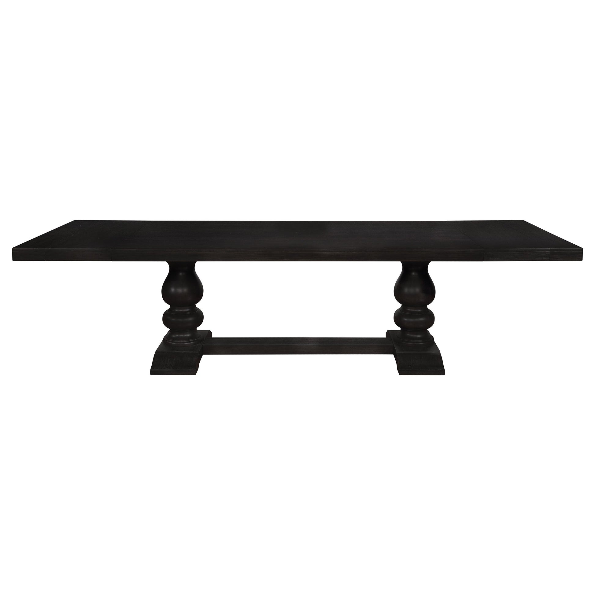Celebrate a curvy, dramatic silhouette that adds an artful elegance to a formal space. This formal dining table offers a lush antique noir finish wood construction with a polished aesthetic. Its trestle-style base reflects sensual tapering and supports beautifully turned legs. Embrace a chunky profile that offers a solid look and feel. This elegant table is extra-long and ideal for a formal dining room.