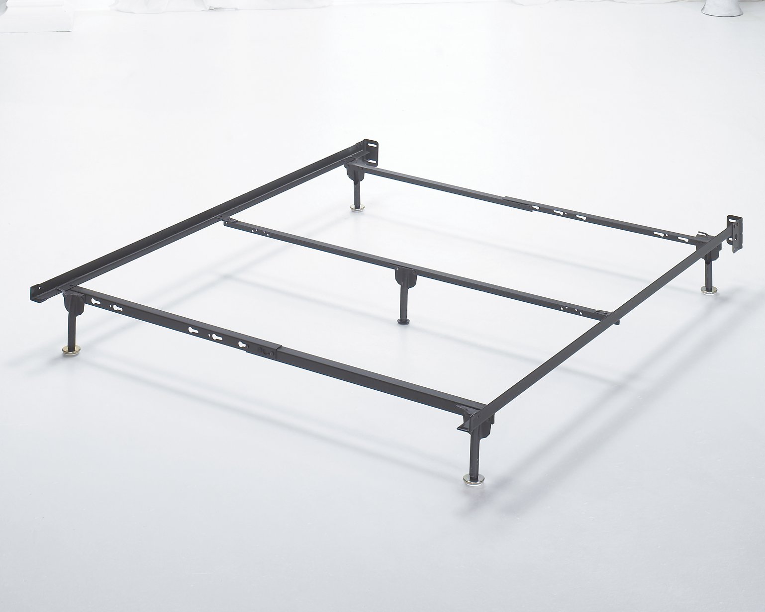 Sturdy metal bed frame supports queen mattresses and box springs. Bolts connect frame to most headboards.| Full Dimension | 61W x 70D x 9H |