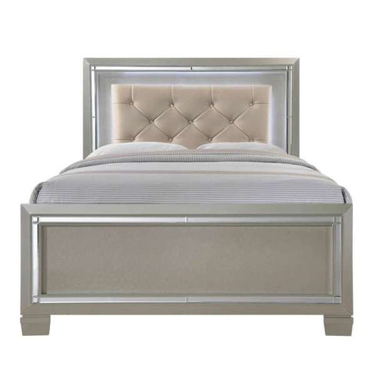 The Platinum Youth Platform Bed is the perfect bed for your glamour queen. Its tufted headboard, mirror glass trim and chic champagne finish will delight for years to come.