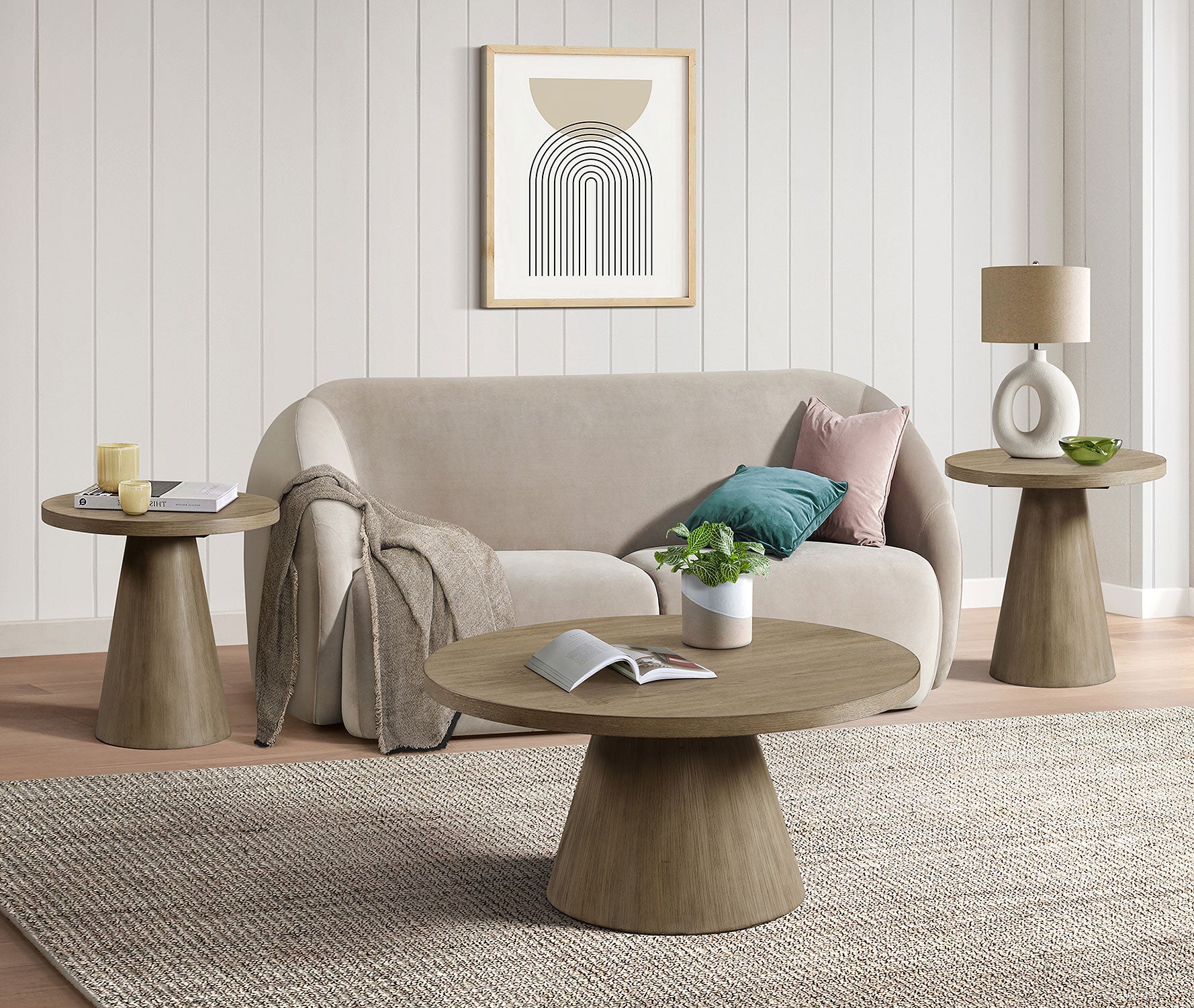 Bring effortless sophistication and modern charm into your home with the Portland Round Coffee Table. Designed to make a statement, this stunning centerpiece features a beautifully grained grey-brown finish that adds warmth and texture to any space. The round top offers ample surface area for drinks, décor, or conversation starters, while the bold, tapered base delivers striking visual appeal and rock-solid stability. Whether you're hosting or relaxing, the Portland table seamlessly blends style and function. Don’t settle for ordinary—elevate your living room with the Portland Round Coffee Table today and transform your space into something truly exceptional. Order now and make every gathering more stylish.