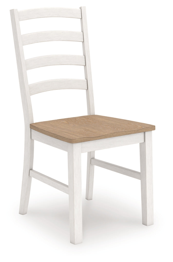 Busy breakfasts and family dinners get a dose of modern farmhouse flair with this dining chair. Its two-tone finish contrasts a light butcher block hue with an antiqued white frame for an utterly charming effect. A contoured seat elevates the comfort level. Complete with a ladderback design, it's an effortless seating solution with chic character.