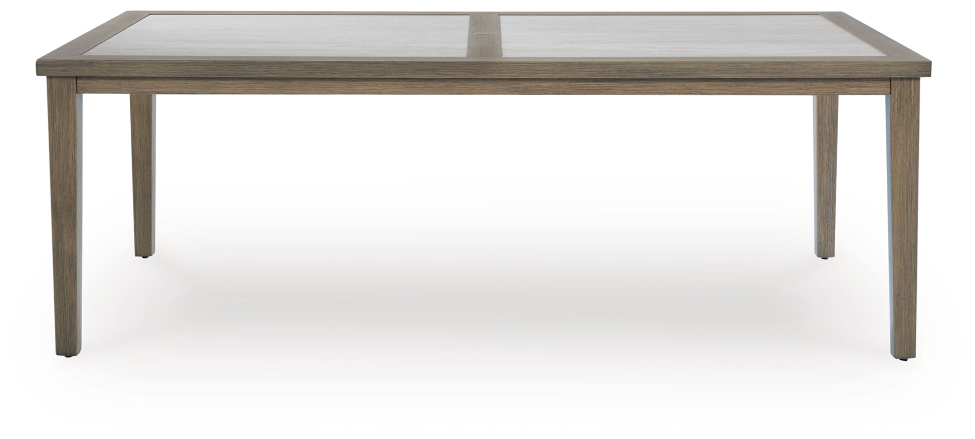 Experience the perfect combination of durability and style with this outdoor dining table. An aluminum frame with a wood-look finish maintains a sleek, contemporary aesthetic, while the sintered stone tabletop adds an element of natural elegance. This delightful addition to your outdoor dining creates an oasis where comfort and beauty thrive.