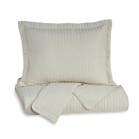This coverlet set sets the scene for a clean, fresh, less-is-more sense of style. Vertical channel stitching infuses the look with just enough texture. Machine washable fabric is made for easy living.