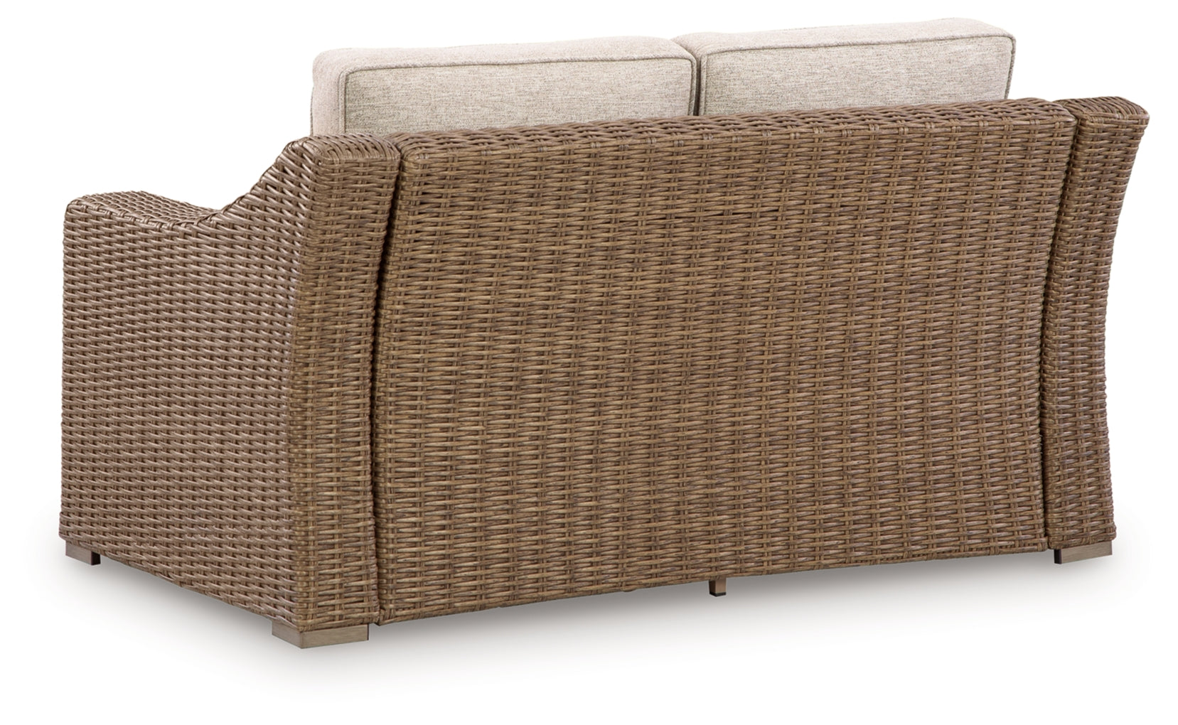 Who says the great outdoors isnÕt made for luxury living? This outdoor loveseat offers all of the high-end design, plush comfort and durability you could ask for, and then some. Its all-weather aluminum frame and resin wicker provide the easy-breezy look you love without the high maintenance. And rest assuredÑthe high-performing Nuvella¨ fabric is made to stand up to the elements.