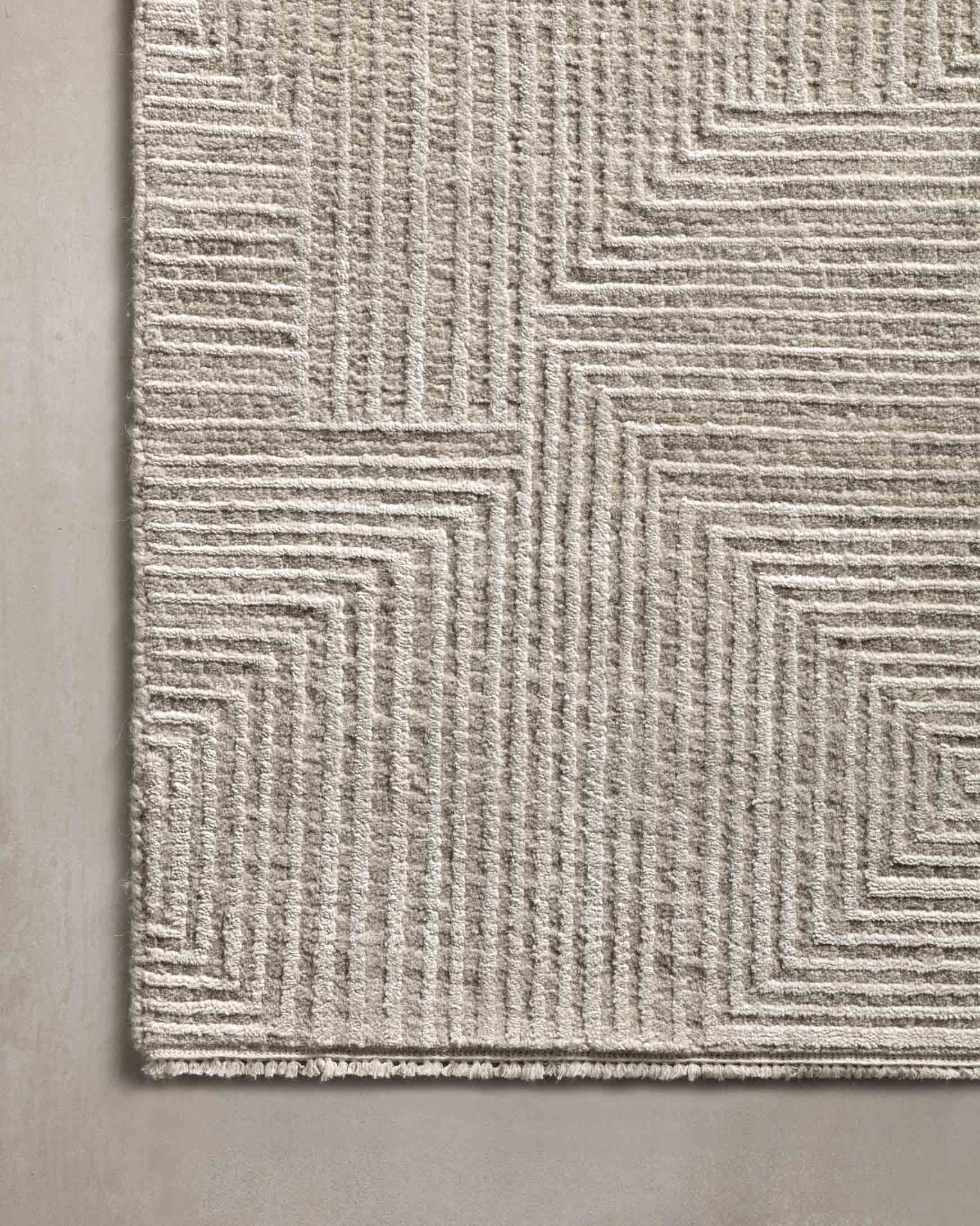 Intricately hand-knotted in India of wool and rayon pile, the Rhea Collection is beautifully delicate with an oblique striping of a lace-like quality and a pearly, neutral color palette. The high-low pattern adds a sophisticated yet striking appeal to any decor style. Rhea is also GoodWeave certified, ensuring our commitment to ethical production and the support of weavers' communities.