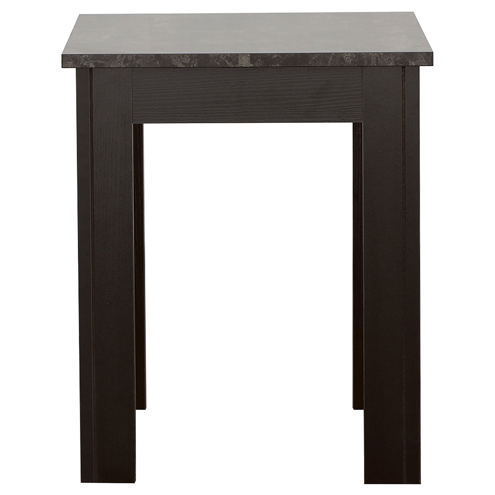 Dress up a parlor or living room with graceful, tasteful style with this three-piece occasional table set. It includes two square end tables and a matching rectangular coffee table, all featuring stunning marble-like faux marble tops for a posh, opulent appearance. The simple, brown finish legs complement the rich tops, rounding out its exquisite look. Constructed from engineered wood with a scratch-resistant, eco-friendly laminate veneer, this set combines durability with classic appeal to enhance any home.