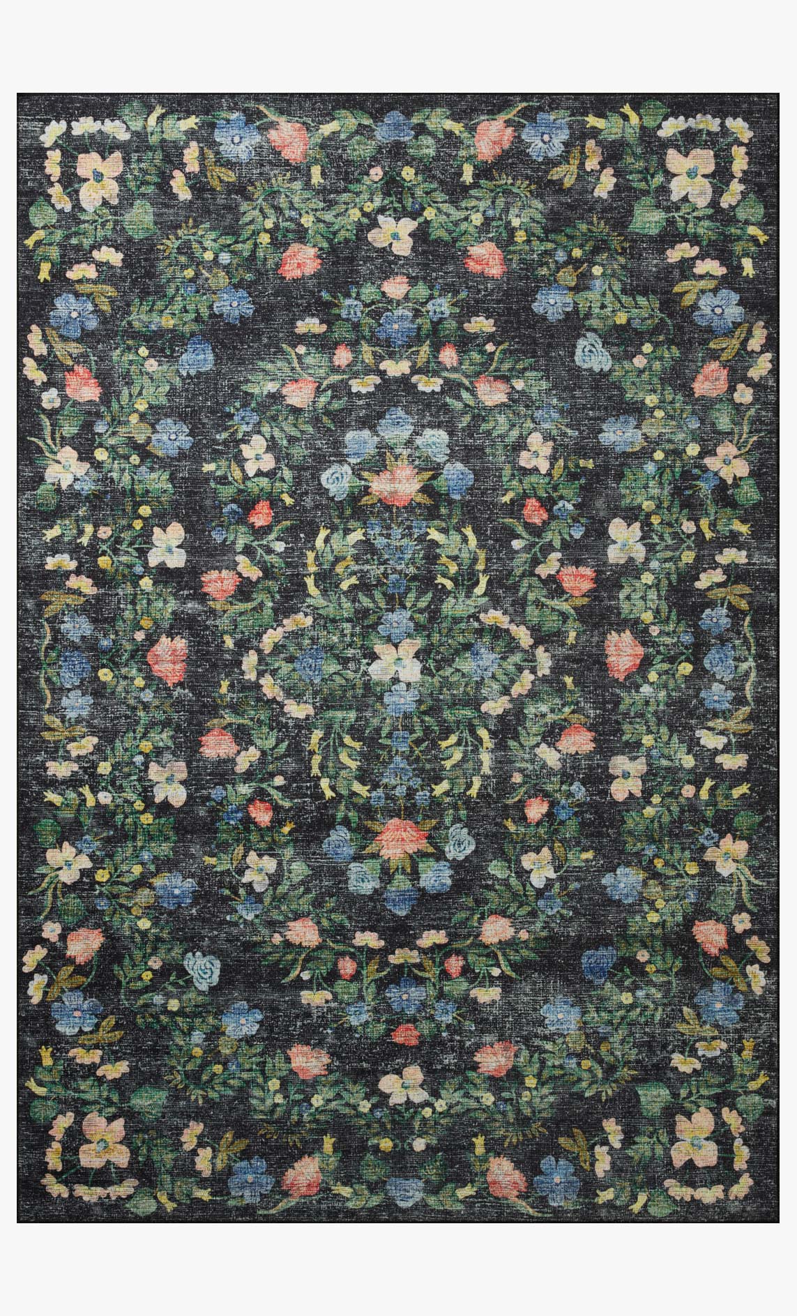 Bold and bright, the Palais Collection for Rifle Paper Co. x Loloi grounds any space with whimsical motifs and playful colors inspired by Anna Bond’s illustrative artwork. Each piece is printed in China on a soft polyester base, ensuring comfort underfoot, colorfastness, and stain-resistance.