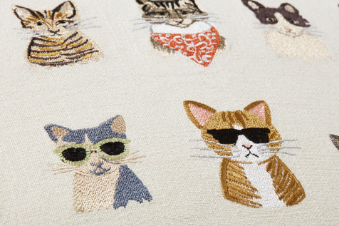 Elevate your décor with Rifle Paper Co. x Loloi Pillows PRP0012. This accent pillow features charming cats, some even wearing glasses! Add a touch of whimsy to any room while showing off your love for felines. Perfect for cat lovers and a unique addition to your home.