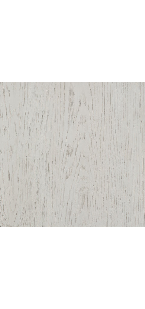 - Antiqued white finish with grain texture