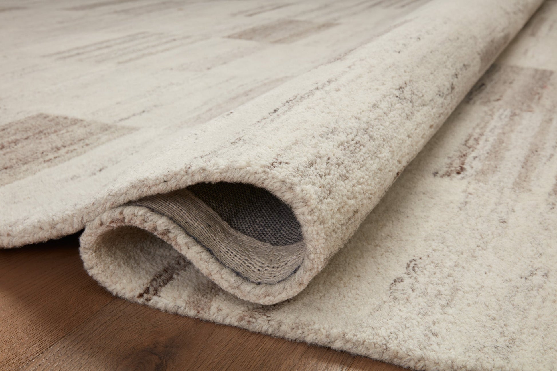 The Rocky Collection area rug by Amber Lewis x Loloi is uniquely hand-tufted with undyed wool to create a subtle and natural color contrast. With a medium pile and neutral palette, the Rocky Collection can be a refreshing foundation in living rooms, bedrooms, and dens. The rug's Moroccan-inspired design features asymmetrical geometric patterns that blend seamlessly with a range of decor styles. Made of hand-tufted wool in India and GoodWeave-certified, ensuring our commitment to ethical production and the support of weavers' communities.