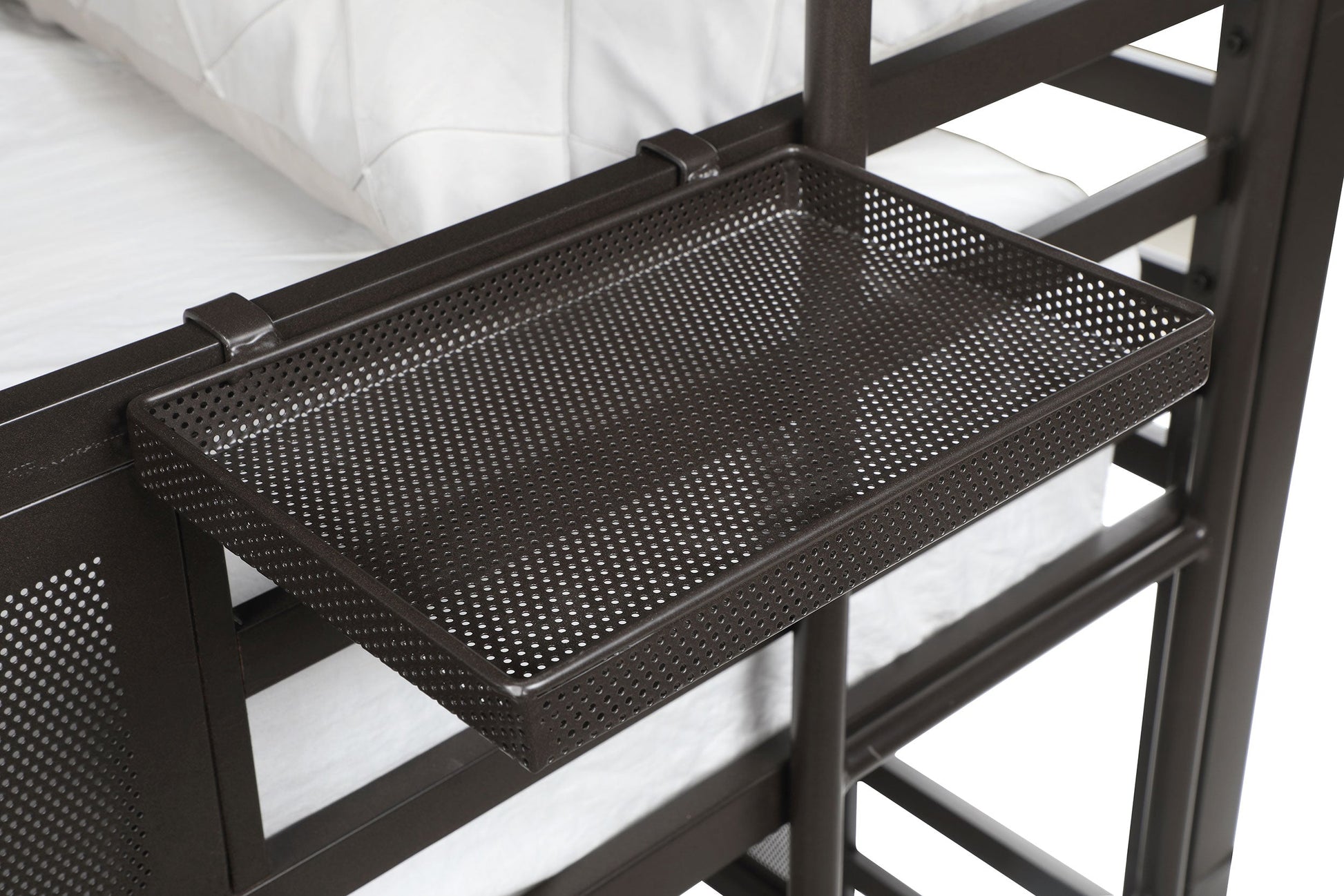 Create a cohesive, contemporary feel in any room with this triple bunk bed. With the ability to separate into three beds, or any combination in-between, this base lies flat on the floor. Built-in ladders help to elongate the streamlined silhouette, with classy and matching guard rails. A dark bronze finish sleekens the smooth lines and adds structure to any modern space. These bunks are sleek and clean, perfect for a modern motif.