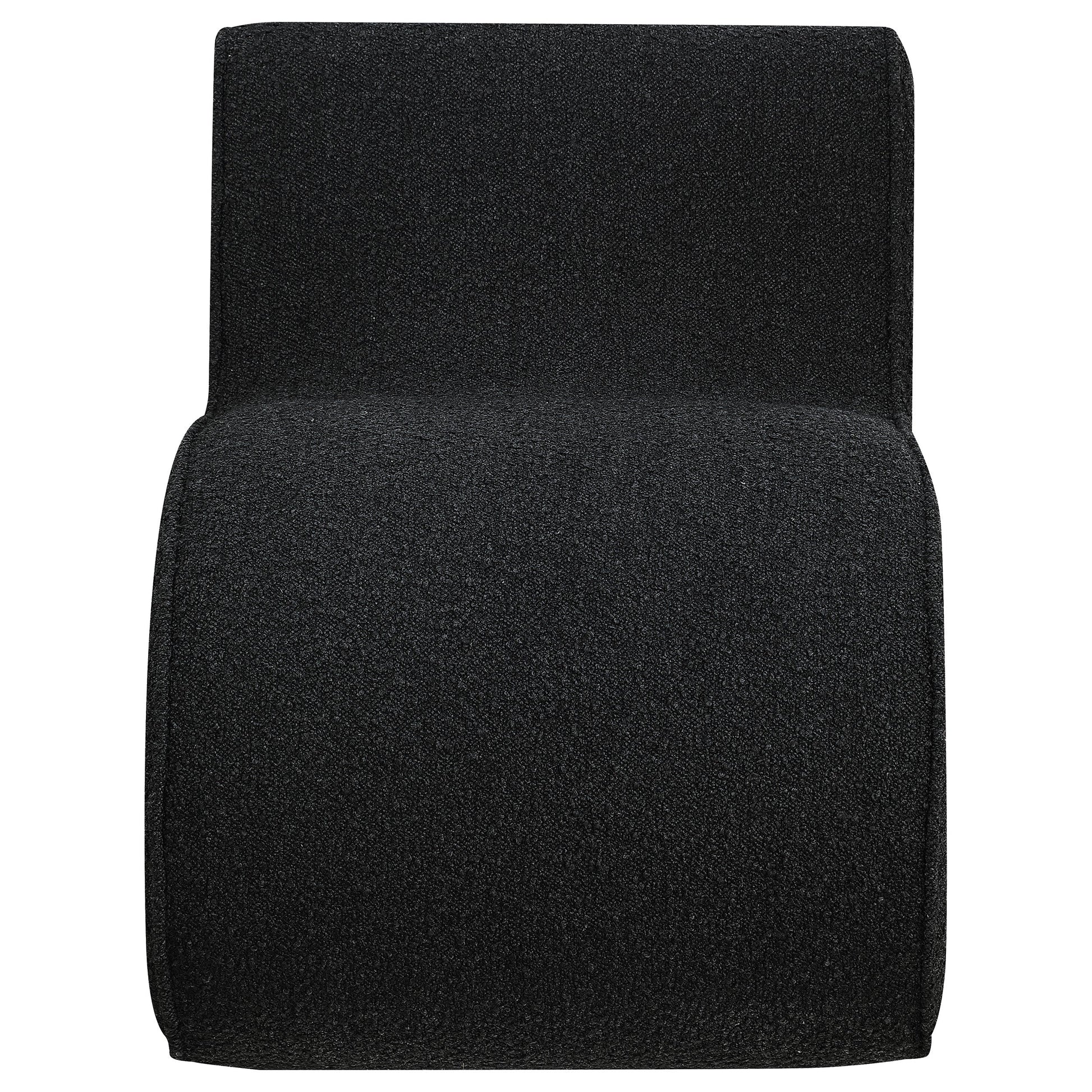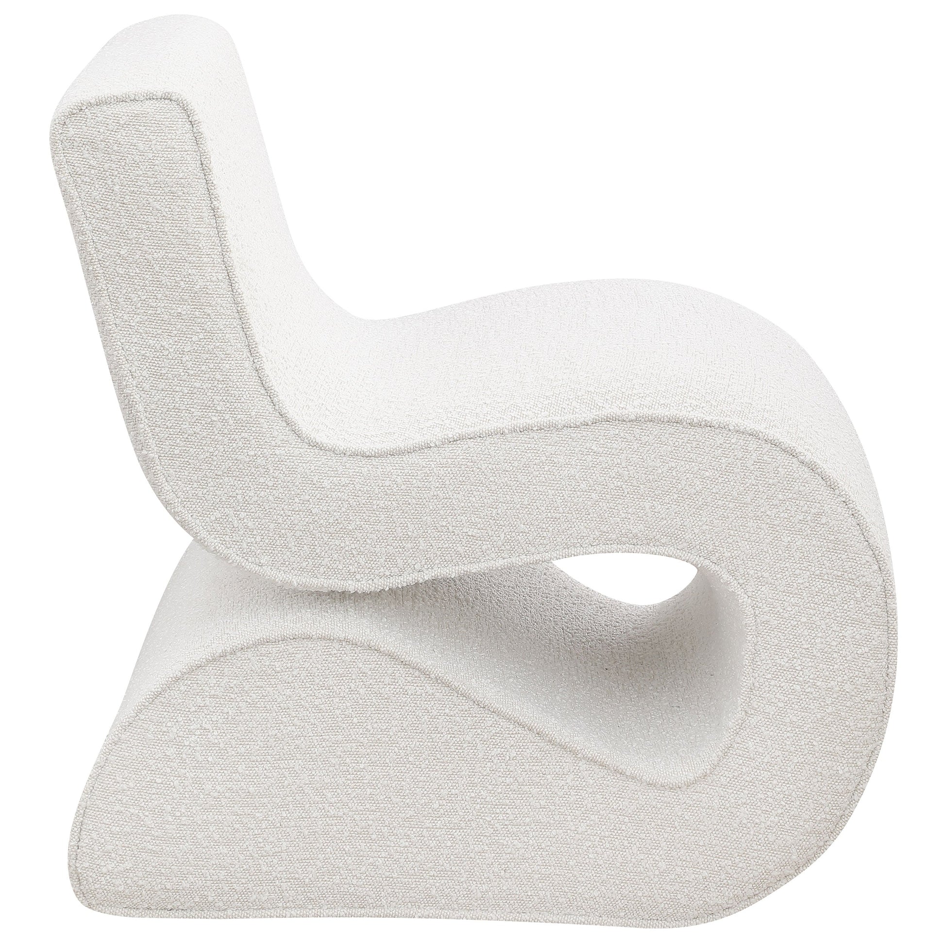 Step into the vanguard of home décor with this modern accent chair, its bouclé fabric not just on-trend but a textural revelation. The chair's unique shape is a conversation starter, sculpted to cradle and command attention in any setting. It's an embodiment of form meeting function, where the tactile allure of the fabric contrasts with the fluidity of its silhouette. This piece is not merely a chair; it's a testament to contemporary design, inviting you to immerse yourself in its stylish embrace. Let the chair's sinuous form and the fabric's cozy charm transport you to a world of chic comfort.