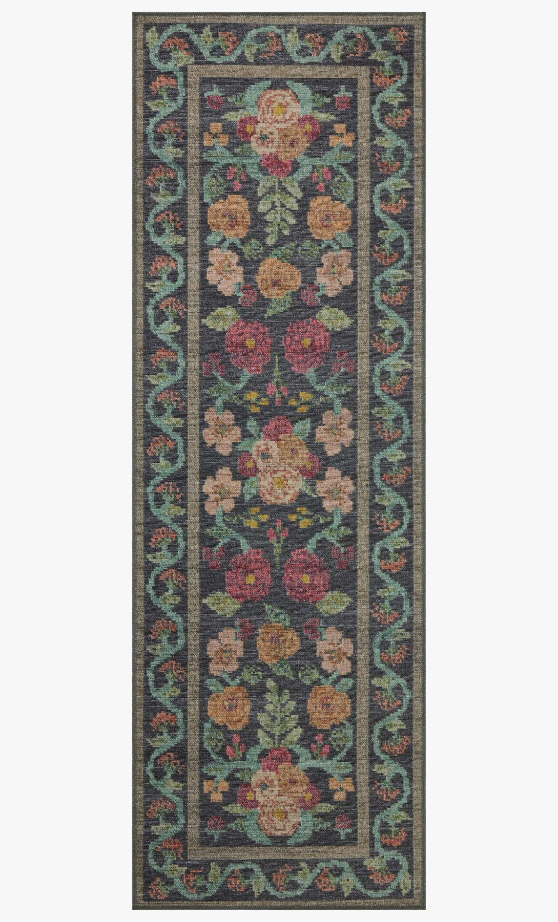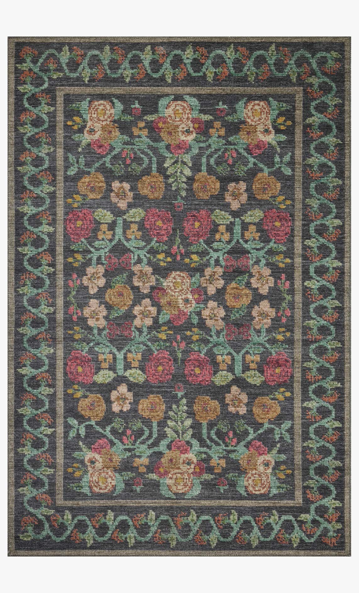 The Rifle Paper Co. x Loloi Rosa Collection features power-loomed area rugs inspired by folk art textiles. Rifle Paper Co. floral motifs anchor the center of the rug, which is framed with a lovely border for the final touch. The rug's construction is both durable and velvety soft, ideal for bedrooms and living rooms alike. Made in Turkey of 100% polyester. This collection is OEKO-TEX certified, ensuring its materials don't contain harmful substances.