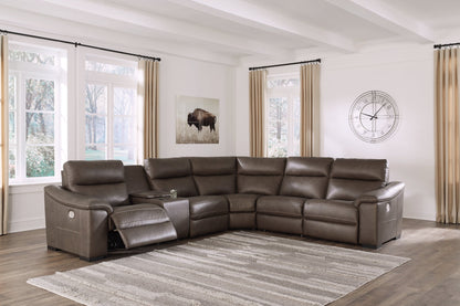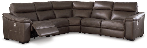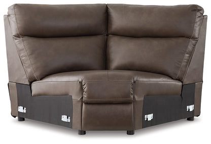 Easy on the eyes and incredibly comfortable, this high-end power reclining sectional will upgrade the look and feel of your living room. Its automotive-inspired leather and faux leather keep luxury right on budget. The modular design allows pieces to be grouped together in a variety of ways. No matter how it's arranged, this sectional is just the right touch for reclining and relaxing in style.