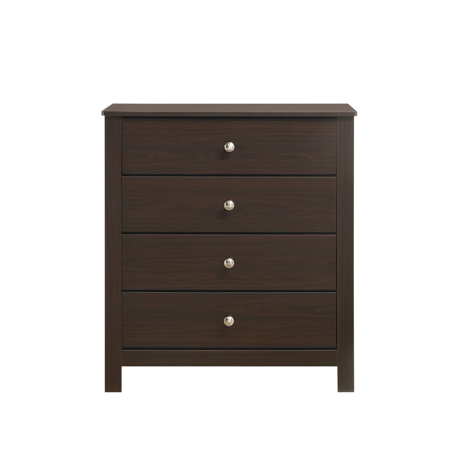 The Sami Chest offers the perfect blend of style and function for your childÕs room. The dark wood finish brings a sophisticated and elegant look, while the spacious drawers provide ample storage for clothing and essentials. Featuring smooth center metal glides, each drawer opens effortlessly for easy access. Designed with youth sizing, this set is ideal for kids' rooms, adding a touch of refinement. Stylish nickel knobs offer a modern accent, and the raised base with open feet gives the chest a contemporary feel, making it a practical and chic addition to any bedroom.