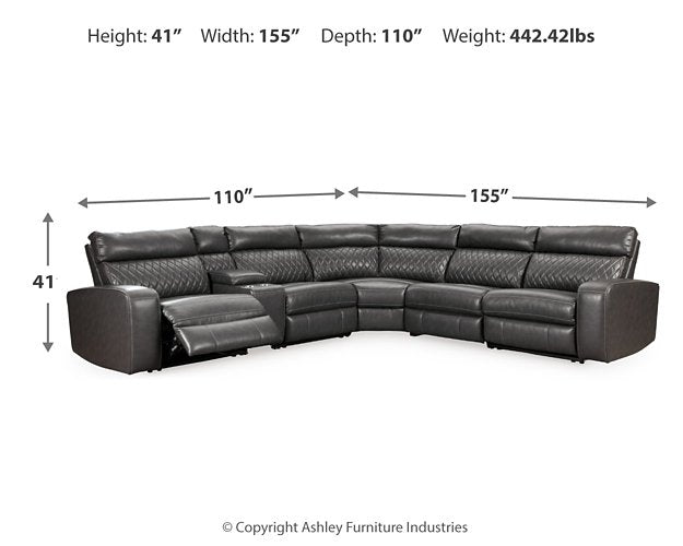 City sleek living. This sectional is loaded with luxury. An ultra-stylish diamond stitch design pumps up the piece with eye-catching drama. And talk about style with purpose. This sectional supports you with a high back and faux leather upholstery in gorgeous gray. Its USB charging station powers up your tech life as you recline in comfort. Cheers to the stainless steel cup holders, too.