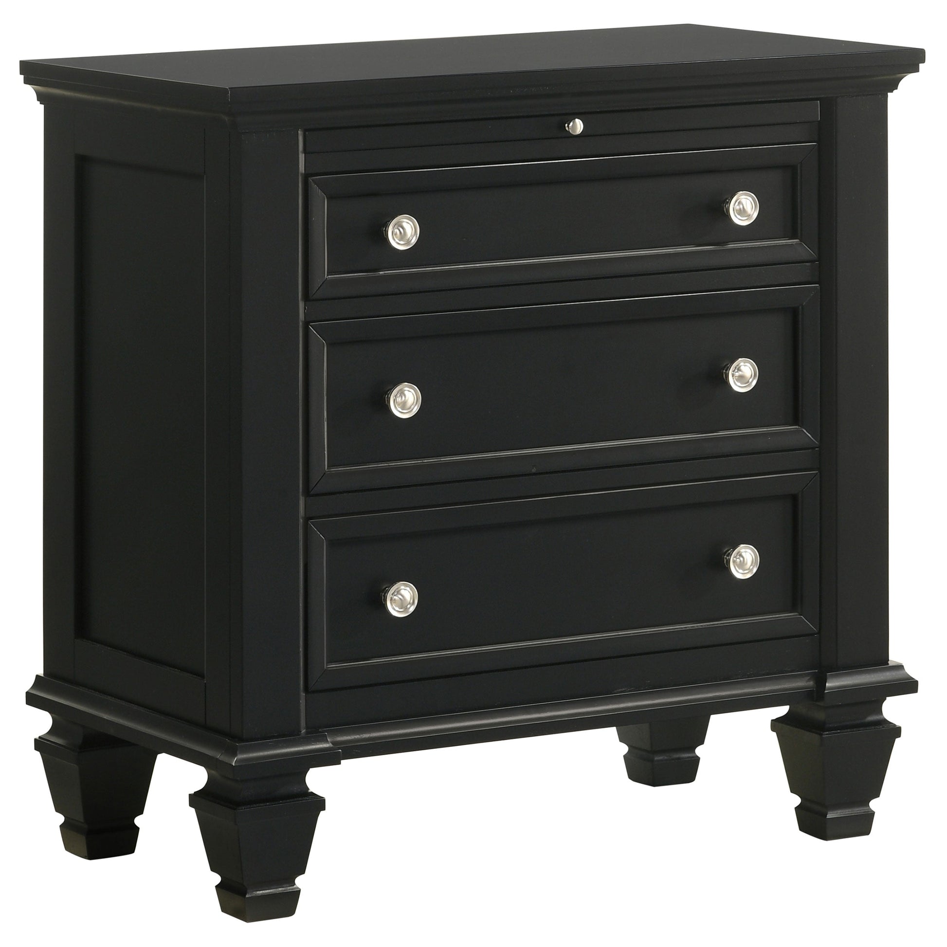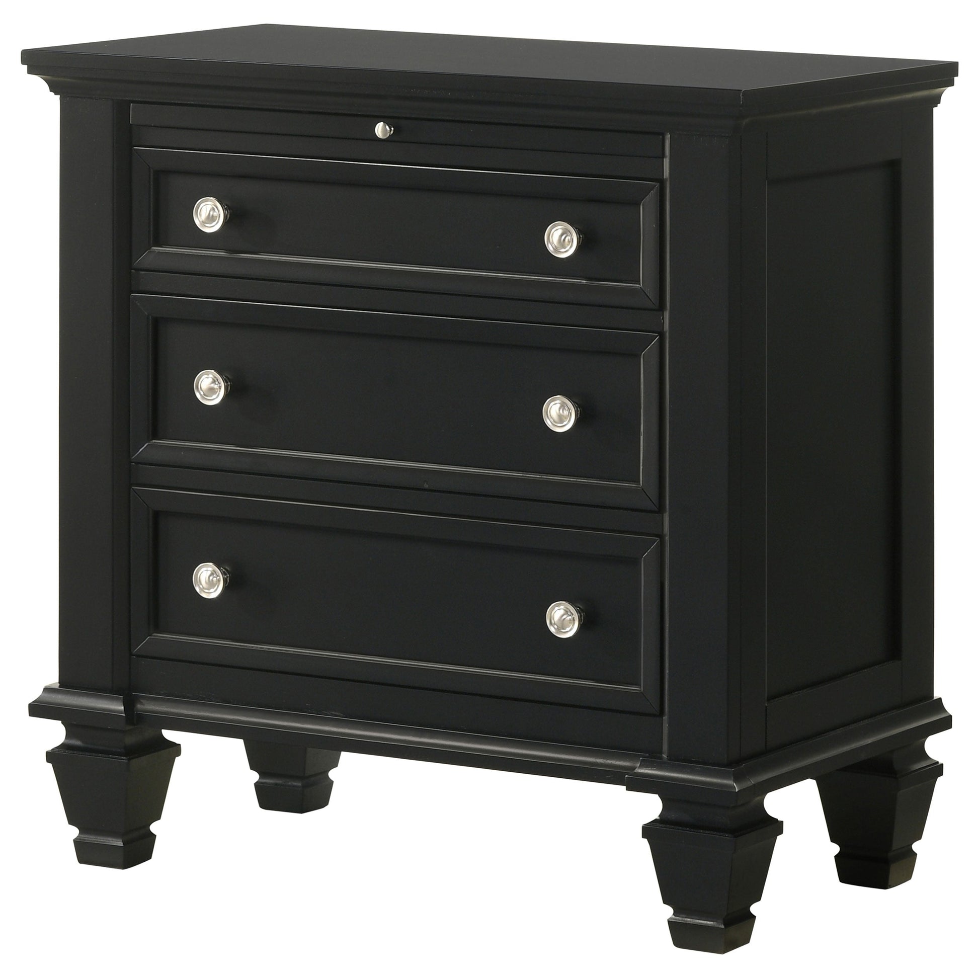 Bring functionality and timeless style to your bedroom with this elegant nightstand, featuring thoughtful design details and ample storage. This nightstand includes three spacious drawers with felt lining in the top drawer, perfect for safeguarding delicate items. The addition of a pull-out service tray offers a convenient surface for drinks, books, or electronics, making it ideal for late-night use. Constructed from solid hardwood and engineered wood, it ensures durability, while the neutral finish and brushed nickel hardware add a touch of sophistication. The drawers are equipped with metal extension glides and feature English dovetail joints for smooth and lasting operation, providing both beauty and functionality to your bedside.