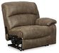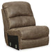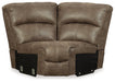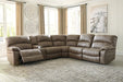 Sporting a driftwood brown faux leather with a gently distressed sense of charm, this sectional invites you to drift away in high style. Rest assured, the sectional’s leather alternative upholstery offers a warm, cozy feel, while clean-lined styling and jumbo stitching deliver the cool, contemporary look you love. Factor in a power reclining motion, USB charging, convenient cup holders and a drop-down table, and you’ve got all the makings for the best seats in the house.| Full Dimension | 134W x 121D x 40H |