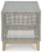 This end table invites your casual contemporary style outdoors. With its resin wicker in a chic neutral hue, it expertly marries refined design with durability. Breezy summer mornings and cold winter nights are made all the more enjoyable with a glass tabletop on hand to hold beverages, snacks and your latest poolside read.| Full Dimension | 22W x 22D x 23H |