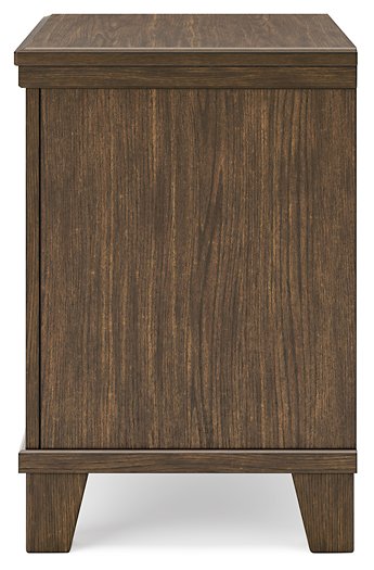 This nightstand is well-suited to everyday living with its expertly balanced approach to style and function. Take the stress out of decorating—a classic medium brown finish easily pairs with existing furniture pieces. And its timeless design stays in style as you update your space, so you can effortlessly enjoy the day-to-day comforts of home.| Full Dimension | 24W x 18D x 27H |