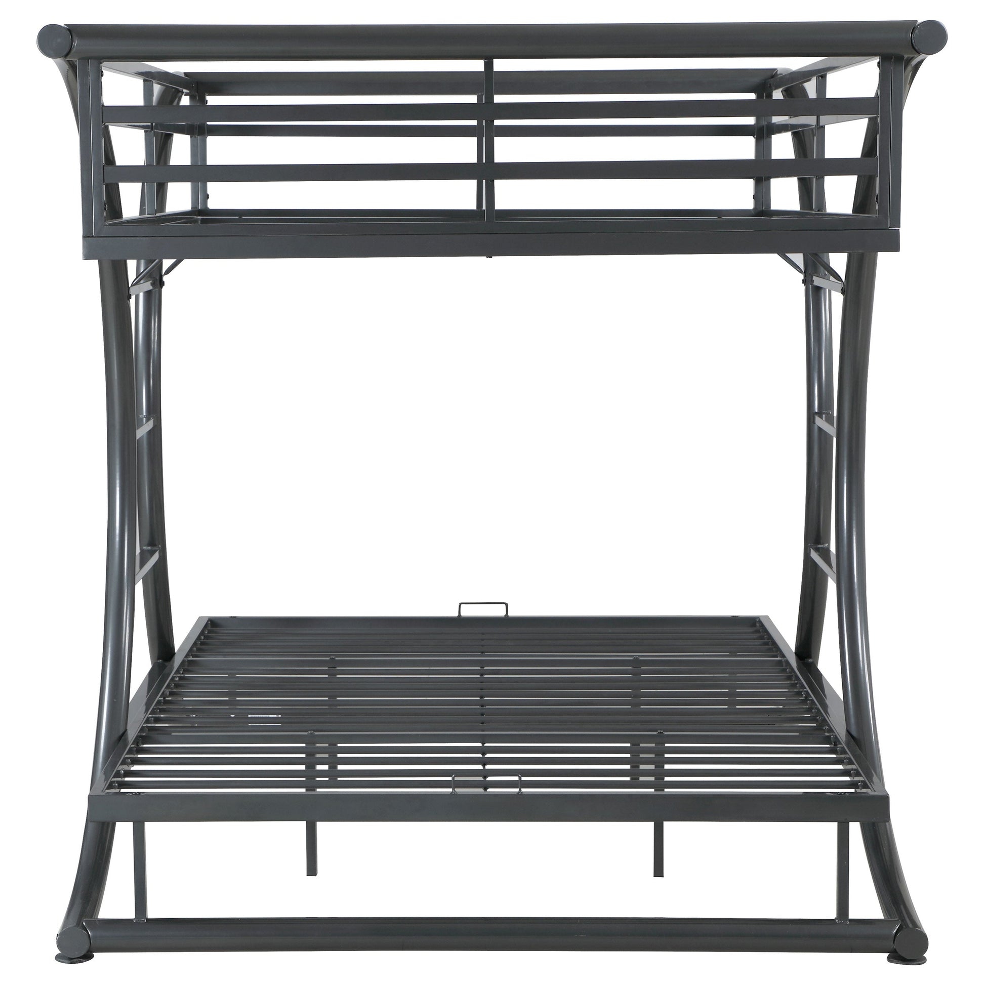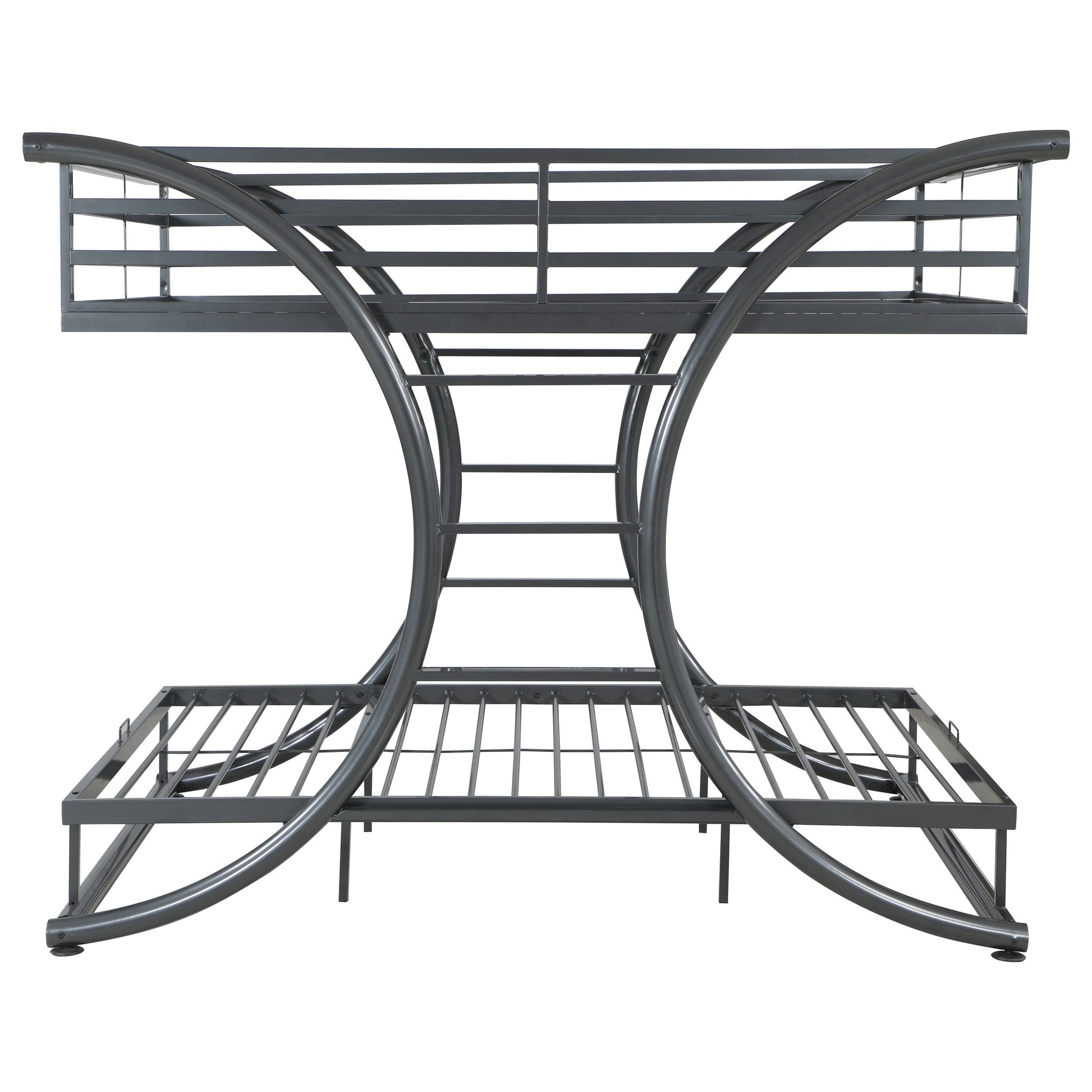 If traditional bunk beds tend to lend an air of fun to sleeping, then this Stephan full/full bunk bed imparts an amusement park type of air. Like most bunk beds, it comes with built in ladders for easy up-and-down access to the top. What sets this one apart is that the ladders on are on the sides instead of the ends and are curved! Although it conveys fun and youthfulness, the top bunk has side rail slats to ensure safety. Adding to the mystique is the dark gunmetal finish.
