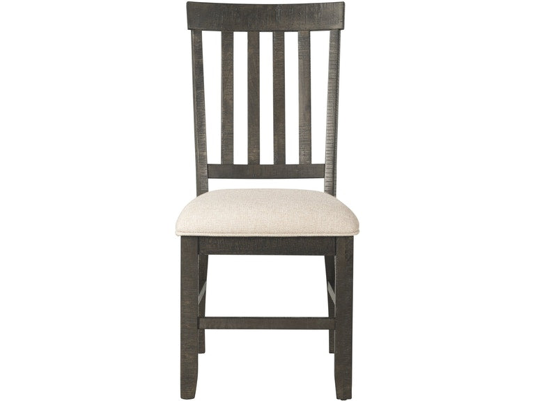 This Stone side chair features wood solids and veneers in a sultry dark ash finish. Slat back and upholstered cream cushion seat give it an elegant look. This piece will be a wonderful addition to your home.