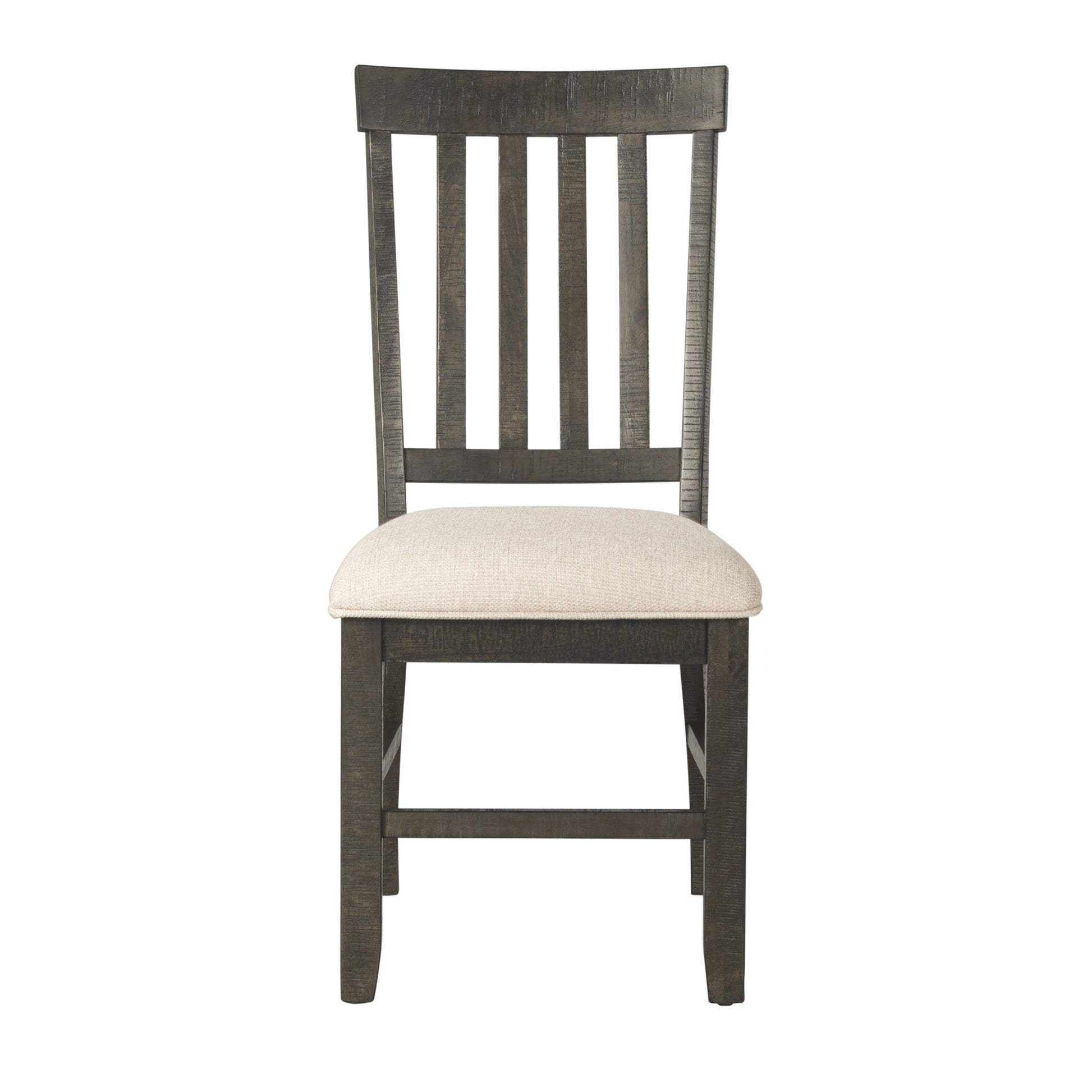 The Stone Side Chair Set brings refined style and warm design to your dining area. This lovely chair features a lath back and cream upholstered cushion seats. The smokey smokey walnut finish completes the look of this charming piece.