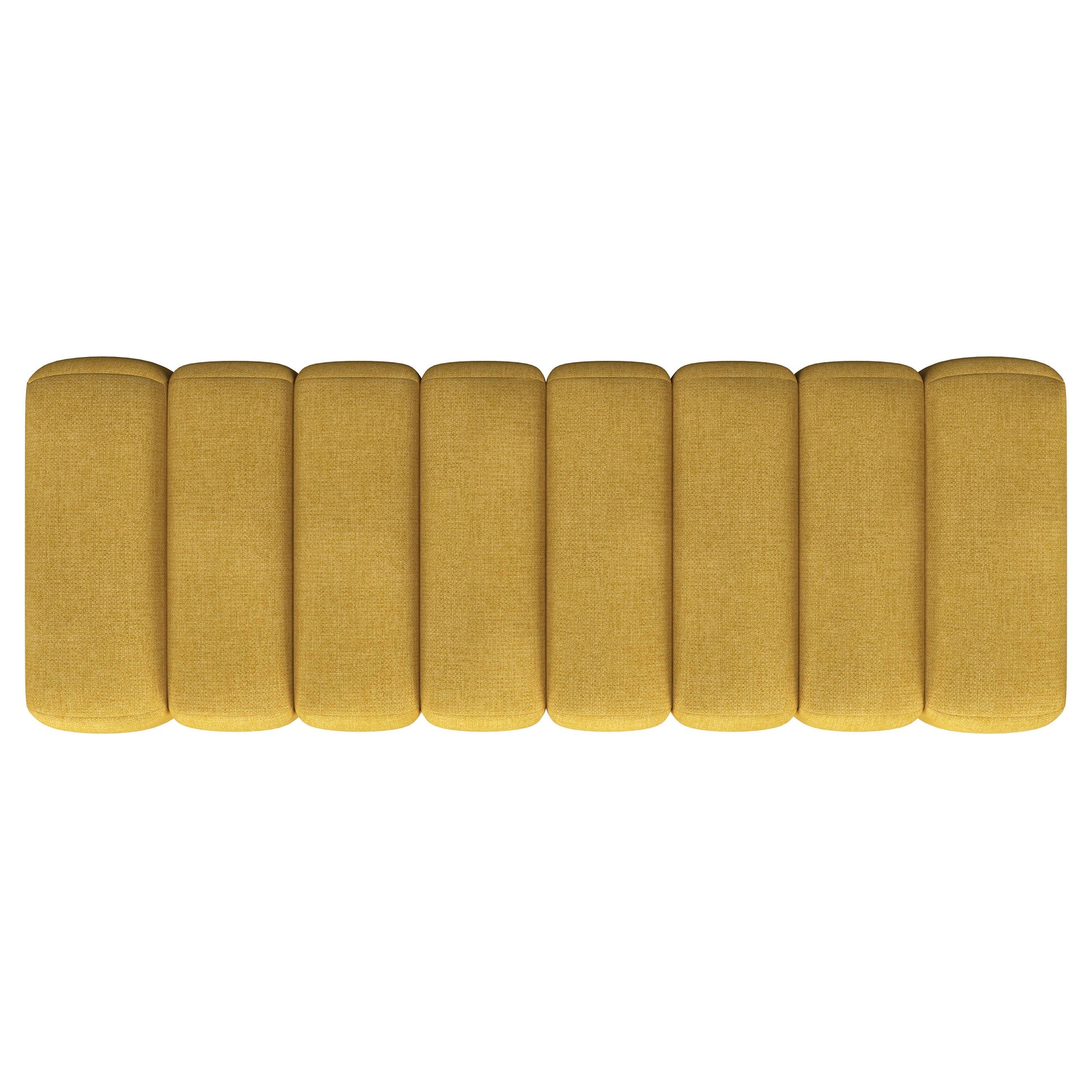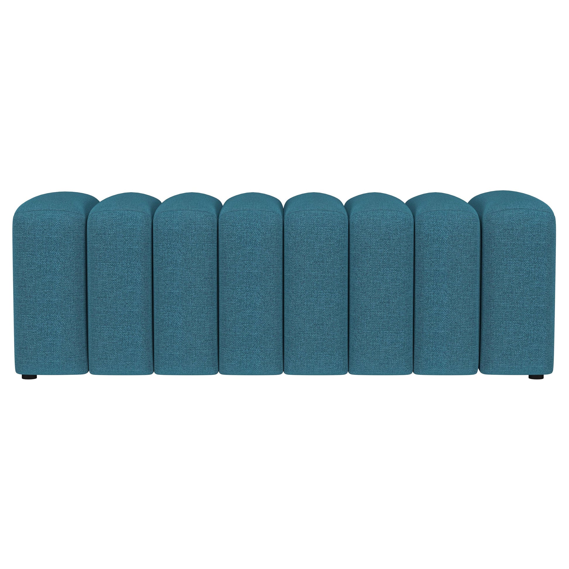 Introduce glam texture and dimension with a decorative upholstered bench. This modern creation features an undulating silhouette without arms or a back, offering sleek style and seating. Perfect for a sophisticated foyer or living room, it adds a pop of color and rich dimensionality with subtle variation in textured fabric. It makes a chic replacement for a coffee table in a linear sitting area, complete with foam cushioning that's firm enough to host a serving tray. Minimal feet create a seamless look and feel in any setting.