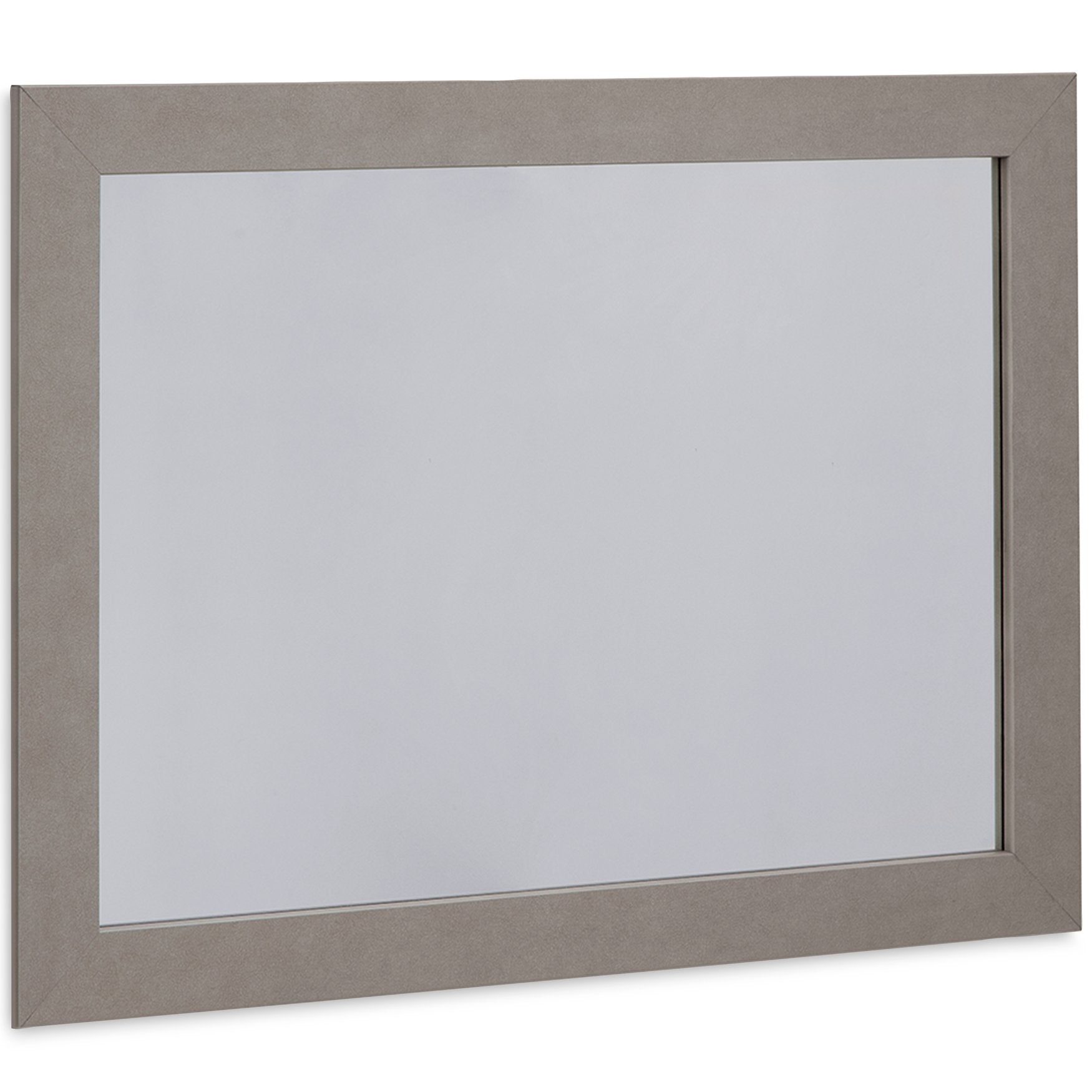 Love sleek and bold contemporary style? Drink in the beauty of this dresser with mirror. Its eye-catching details include glam glitter accents and the look of leather grain with a subtle gray finish. Large-scale linear handles, in a sophisticated champagne chrome tone, play perfectly with the streamlined aesthetic. This storage piece is a simply stunning way to achieve the bedroom of your dreams.