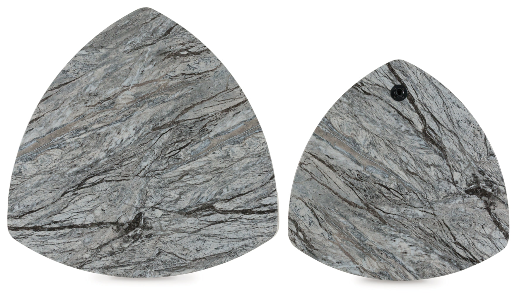 Striking contemporary form, meet canÕt-miss function. This stacked coffee table pairs the look of faux gray marble with a weathered gray wood grain for a simply chic approach to monochromatic style. Make the most of your space with its cantilevered designÑsimply roll out the pivoting lower table when you need the extra room, and effortlessly tuck it away when you donÕt. What a luxe take on everyday living.