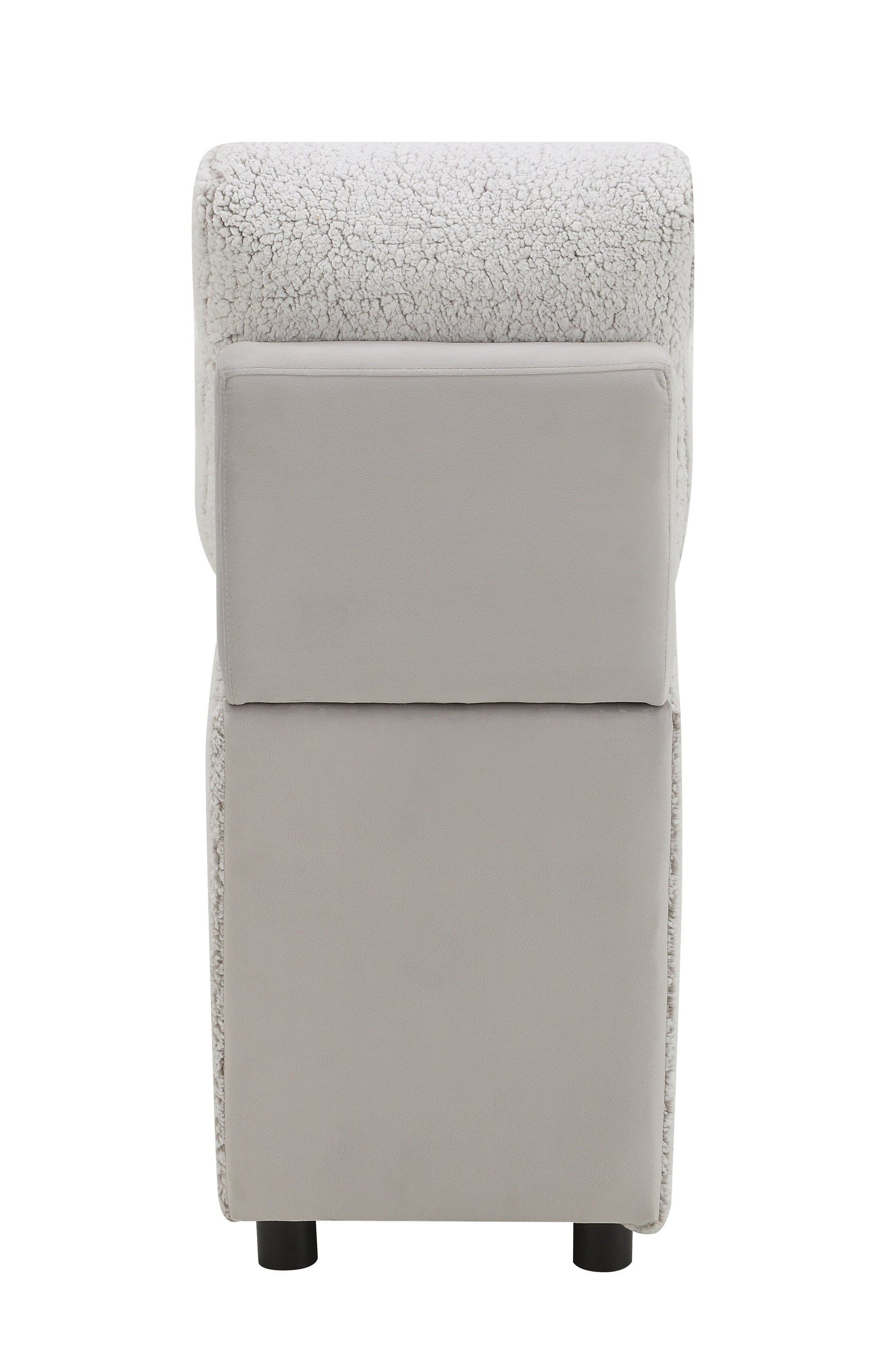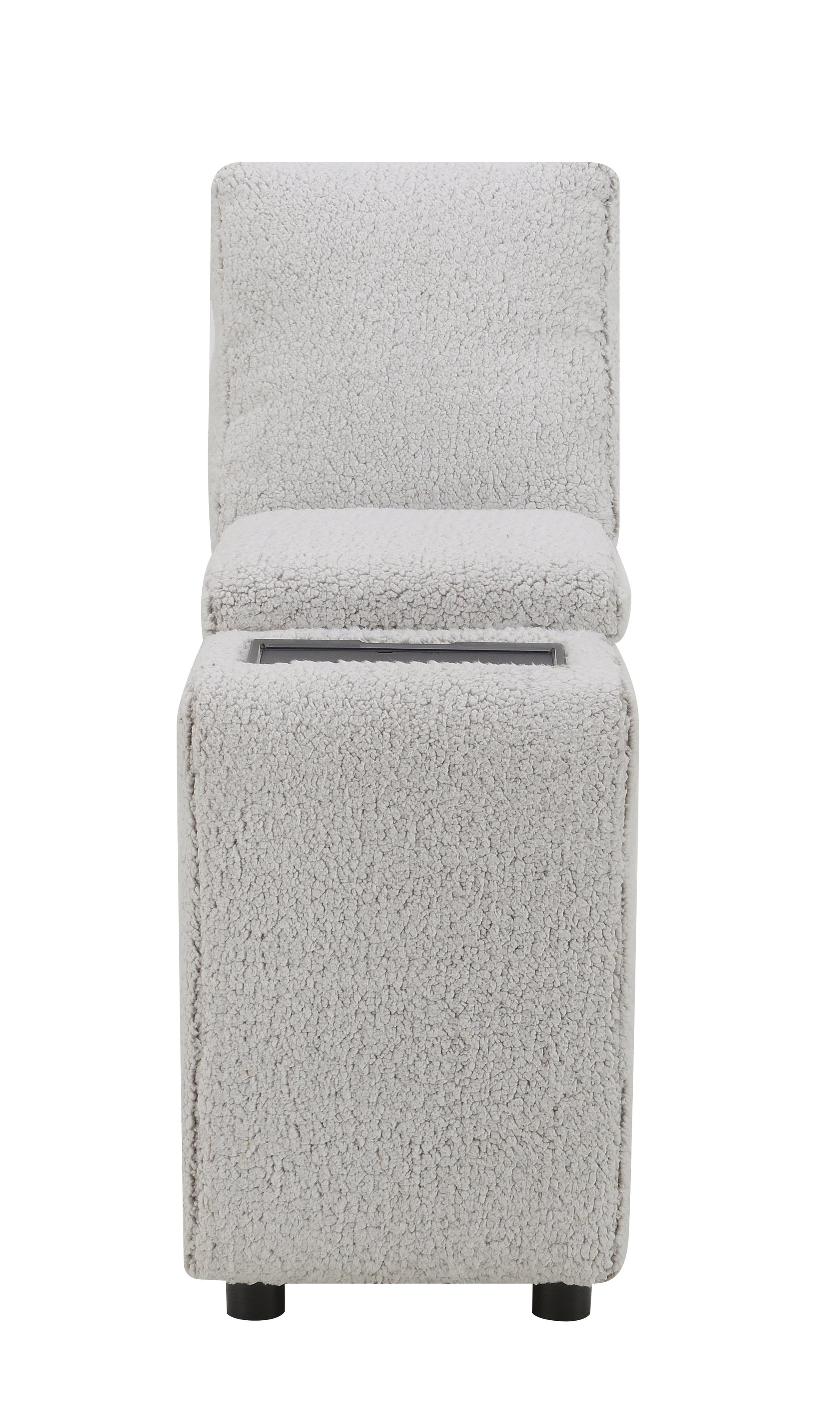 Discover the perfect blend of comfort and convenience with the Tarrance Collection Modular Console. Wrapped in soft gray sherpa with velvet side accents, it brings tactile luxury to your living space. The lift-top storage keeps essentials hidden yet accessible, while the wireless charging pad and USB port ensure your devices stay powered at all times. Compact and versatile, this modular console fits seamlessly into any sectional arrangement, offering both function and modern elegance.