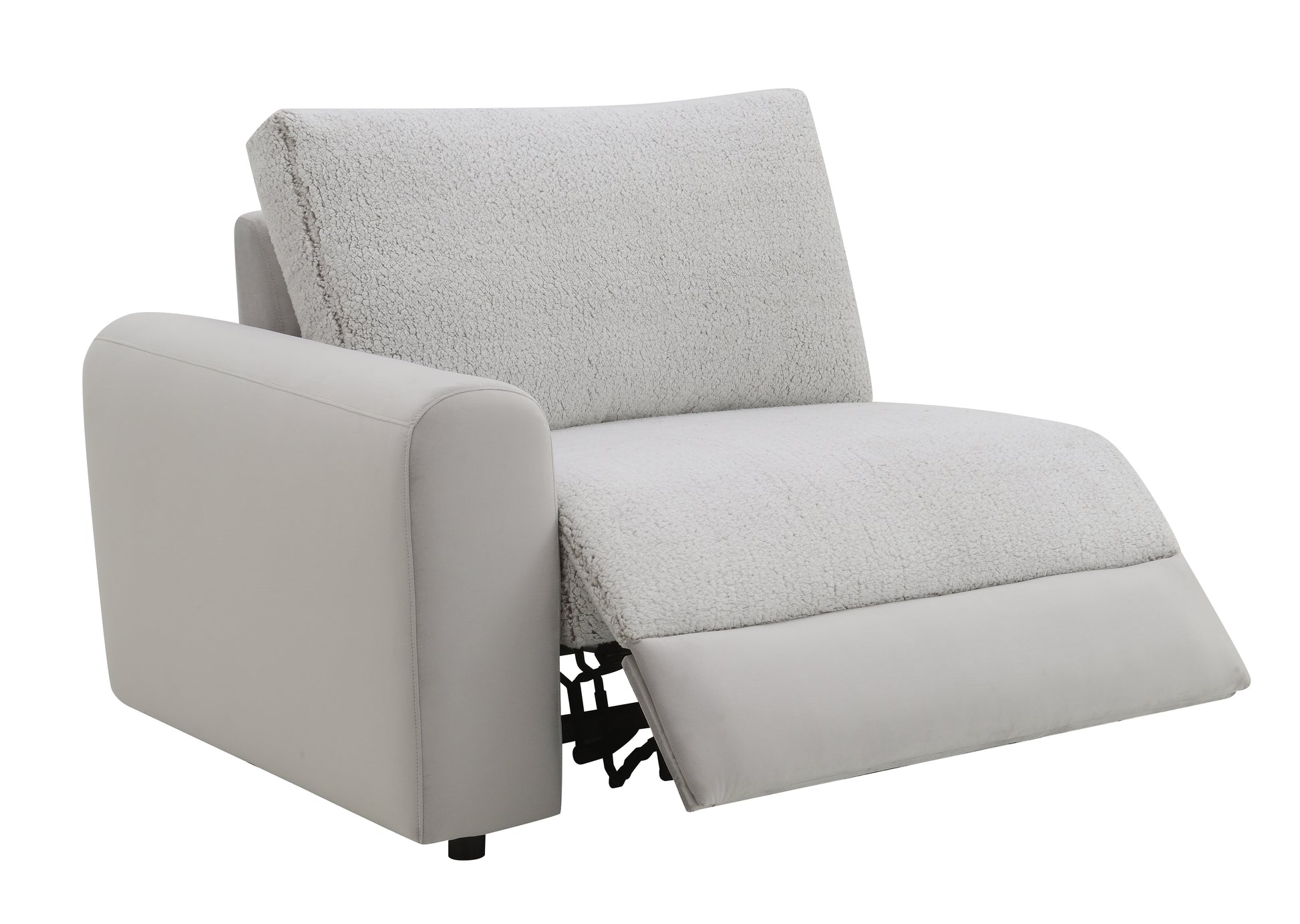 Wrapped in cozy sherpa and sleek velvet, this modular power recliner blends modern function with irresistible comfort. Power reclining invites relaxation, while built-in wireless charging and USB keep devices ready at hand. Designed for versatility, it’s the perfect mix of style, convenience, and everyday indulgence.