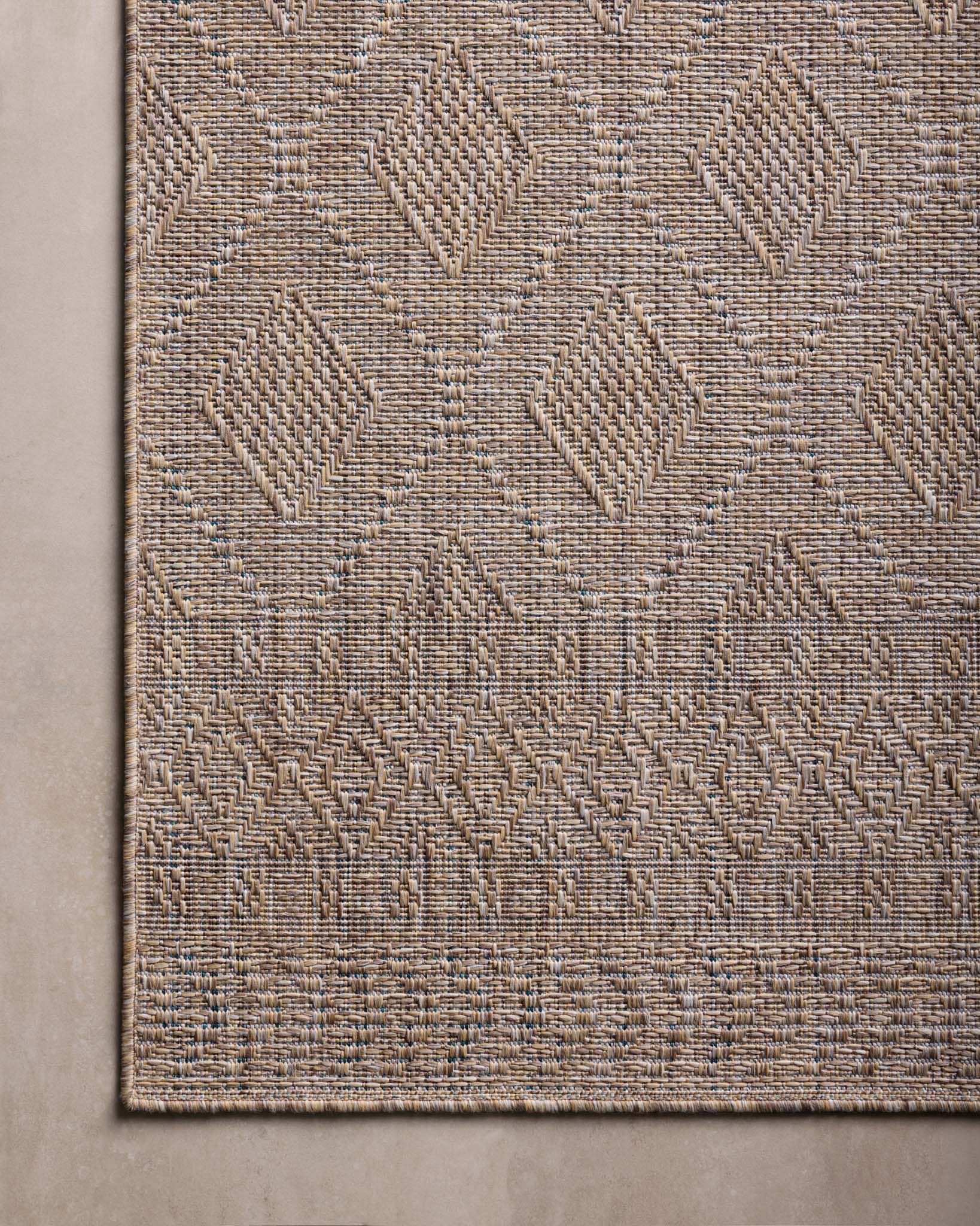 Inspired by the scenic mountain town in California, the Topanga Collection is an indoor/outdoor rug made of durable polypropylene that resembles natural fibers but is much more ready for sun, rain, and high-traffic use. The rug's modern construction also makes it easy to clean (just hose off and air dry), whether it's styled in a dining room, mudroom, or backyard patio.Classic geometric motifs bring a subtle pop of pattern to this sophisticated, neutral design by the celebrated interior designer Amber Lewis, made in collaboration with Loloi. This collection is OEKO-TEX certified, ensuring its materials don't contain harmful substances.
