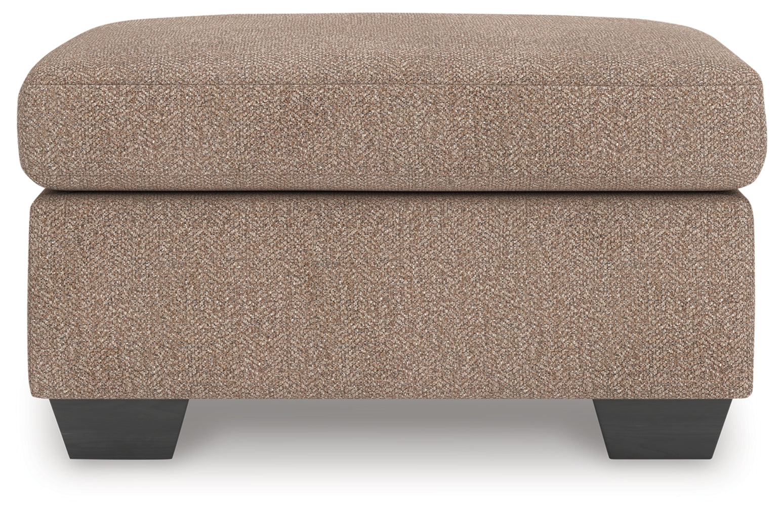 Transitional and right on trend. This ottoman's upholstery is a delightful change from the ordinary, with hints of soft brown giving the gray hue added depth. Whether you're hosting friends and family or relaxing solo, this ottoman invites homey, comfortable character into your space.