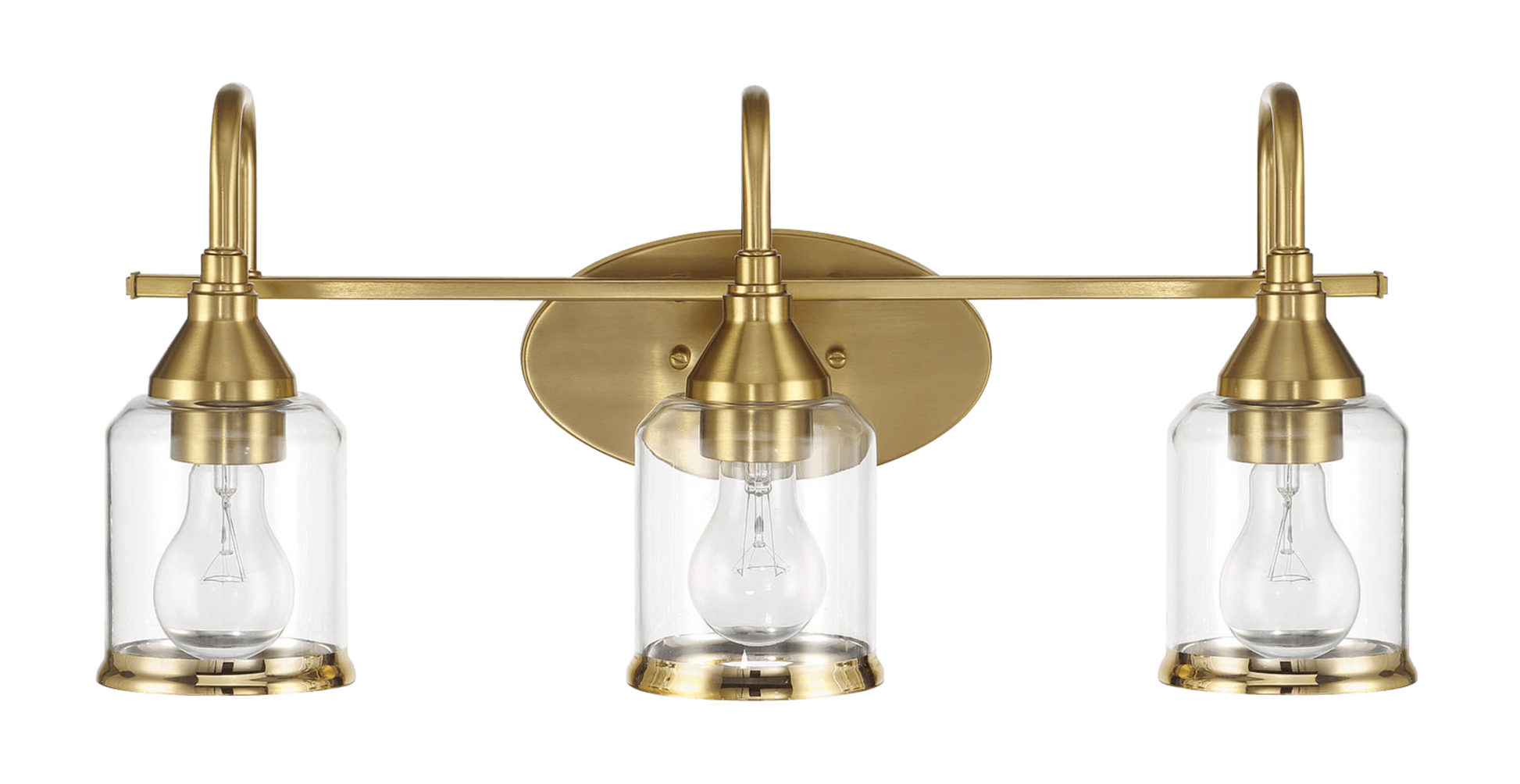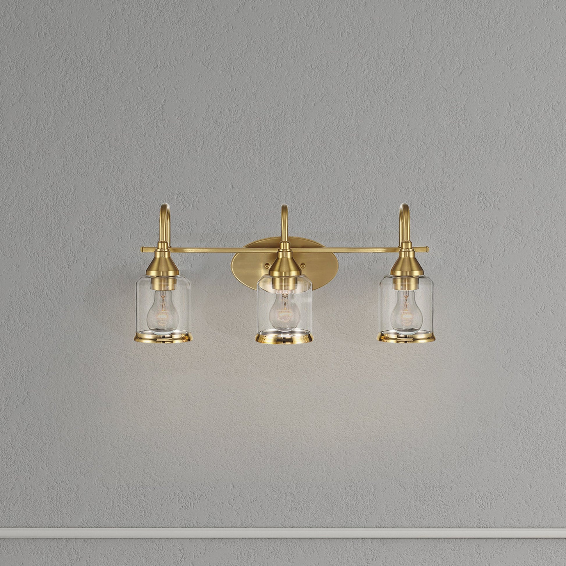 Illuminate your space with the stunning Twilight Three Lights Vanity Light. Featuring a contemporary design with a brushed gold finish and clear glass shades, this 22"W × 10"H × 7.48"E light will add a touch of elegance and sophistication to any room. Experience both style and functionality with this beautiful and versatile piece. Elevate your space with the radiant beauty of the Twilight Three Lights Vanity Light. With its modern silhouette, luxurious brushed gold finish, and delicate clear glass shades, this exquisite 22"W × 10"H × 7.48"E light is the perfect blend of elegance and functionality. Transform any room into a sophisticated oasis with this stunning and versatile piece.
