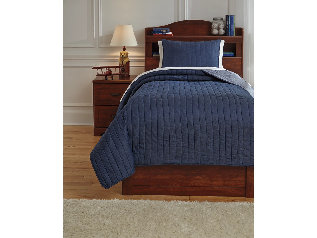 The Twin Set Capella features a deep navy blue quilt with a simple, modern stitched pattern. Its solid color and clean design make it an easy match for any bedroom style, adding a calm and polished look to a Twin bed.