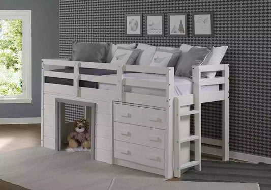 Transform your child's room into a haven of dreams with our Donco Kids Sweet Dreams Twin Rustic White Low Loft with 3 Drawer Chest. Crafted with love and care, this charming bed isn't just furniture; it's a portal to adventure and imagination. Watch your little one's eyes light up as they discover the magical world beneath, a secret hideaway for playtime and cozy moments. Our low loft bed is more than just space-saving; it's a canvas for their growing creativity. With its elegant design and soothing color palette, it effortlessly blends into any decor, adding a touch of modern elegance to their space. Give your child the gift of sweet dreams, where their comfort and joy are our top priorities.