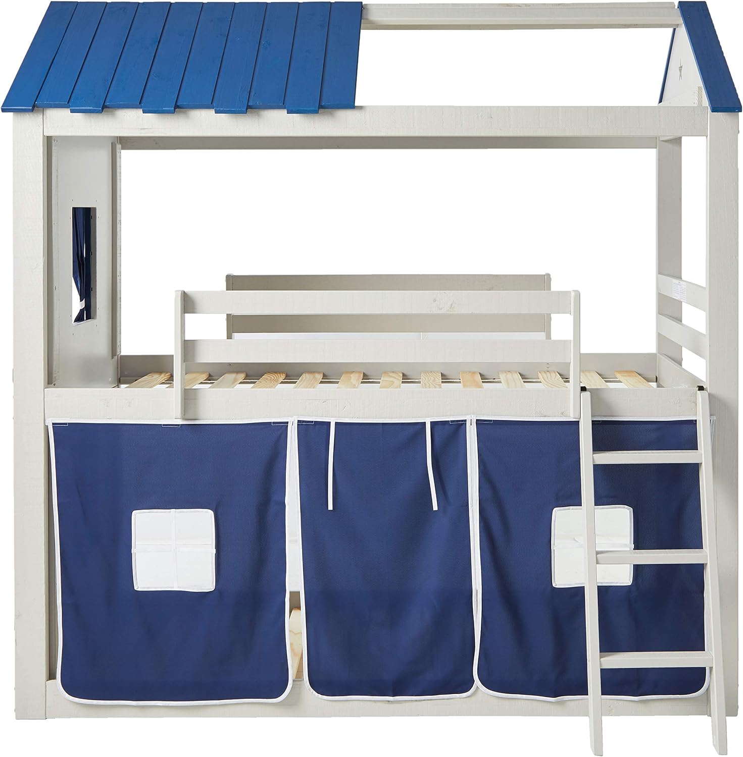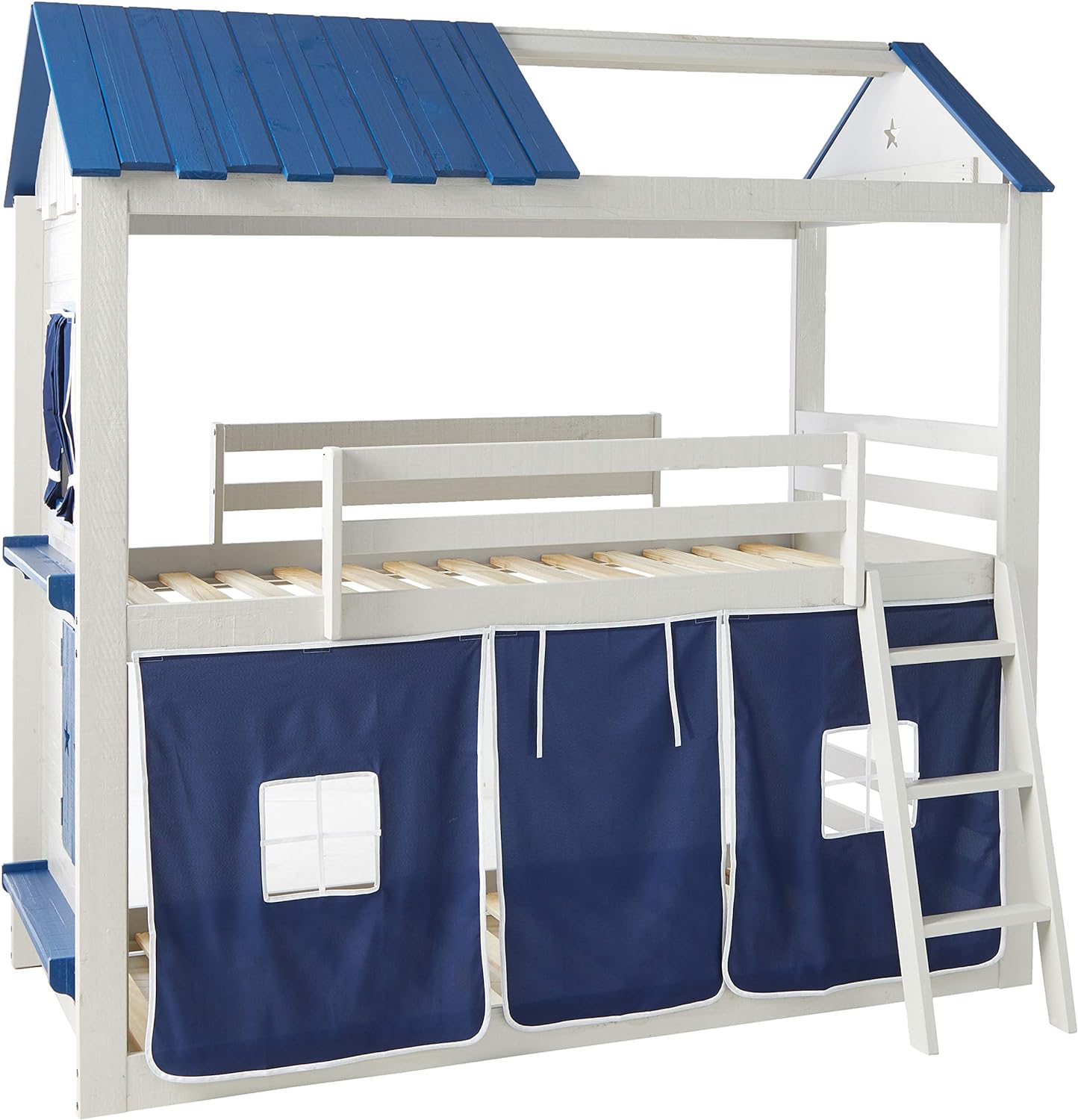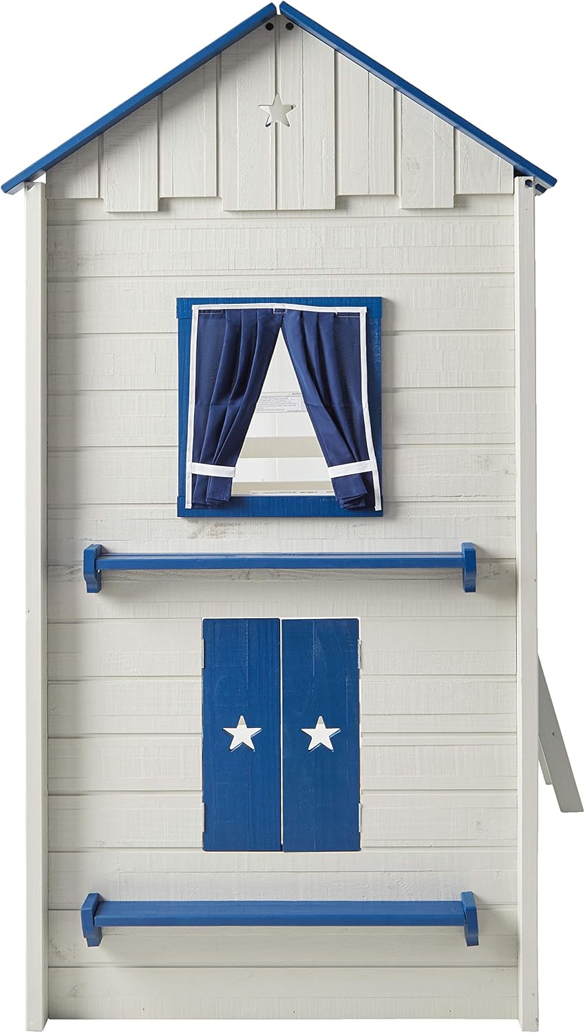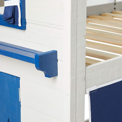 Any child will be excited to have their very own hideaway in their bedroom with the Star Gaze Bunk Bed. This twin over twin bunk bed has a light gray and blue finish and features a three-step ladder for easy access the to the top bed. The Star Gaze Bunk Bed is as sturdy as it is fun. Quality solid wood construction and beautiful details will make this a wonderful addition to your child's bedroom.