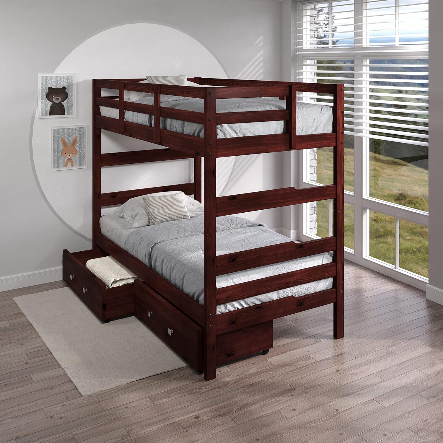 Introducing the Donco Kids Promo Shaker Twin over Twin Cappuccino Bunkbed, a timeless masterpiece in children's furniture. This elegant, space-saving design is a parent's dream, seamlessly blending style, and functionality. The warm cappuccino finish complements any decor, while its sturdy pine wood construction ensures durability for generations. With exceeding federal safety standards, your child's safety is our top priority. Crafted with love by Donco Kids, this bunkbed embodies our commitment to quality, safety, and endless childhood adventures.