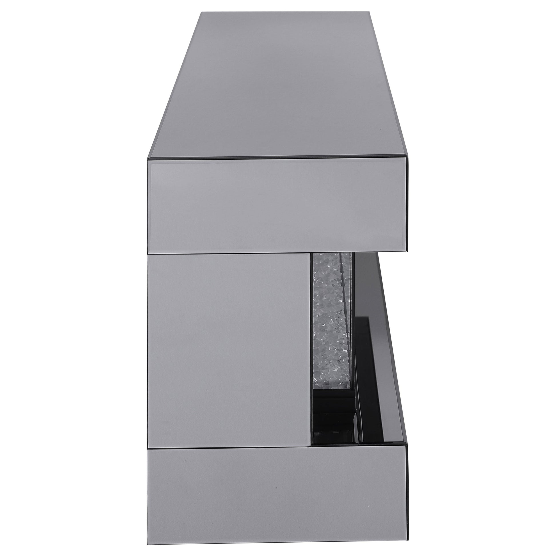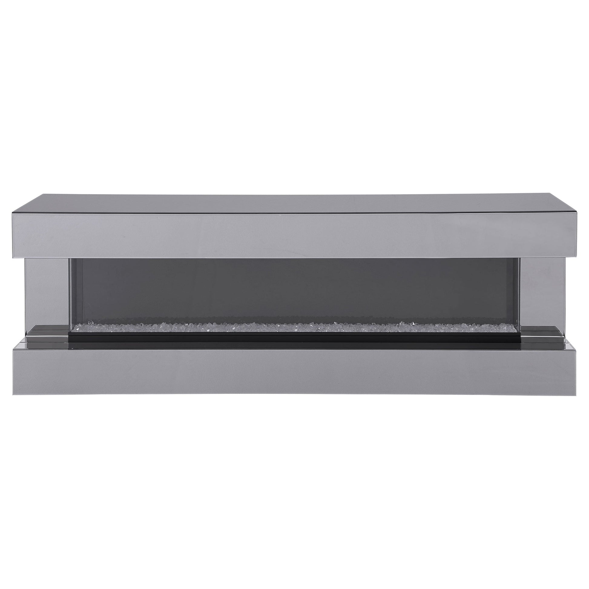 Create incredible ambiance in your living room with a modern TV stand that includes a visual flame box. It delivers realistic three-dimensional flames that offer 13 color options and adjustable brightness to create the perfect mood. The case features clean, straight lines that complement in a modern or minimalist living space. It accommodates a television up to 72 inches, and is a perfect choice under a wall-mounted television, creating a place for peripherals and decor that bring personality. A black finish lends chic flair, sure to complement your contemporary decor.