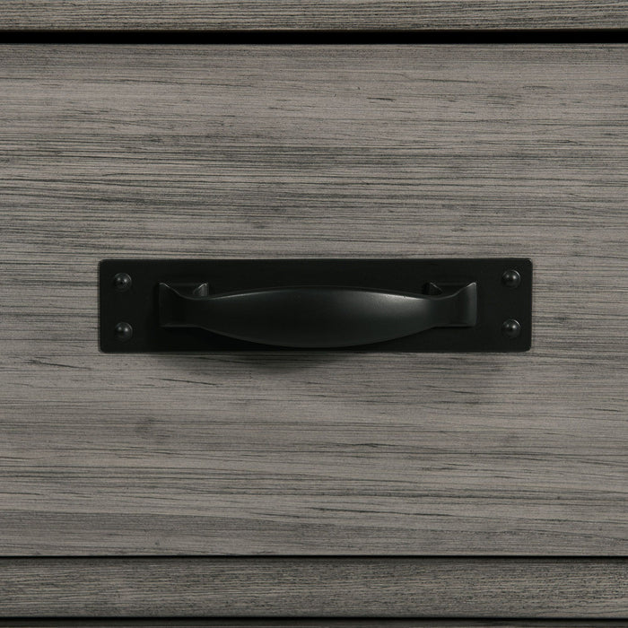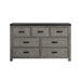 The Wade 7-Drawer Dresser is the ultimate dresser for your home! This bedroom staple comes with seven, spacious drawers; perfect for easily keeping all of your belongings neatly stored away. The bottom drawer features a dust proofing layer to help protect your belongings. The drawer pulls and trims along the top of the chest are both metals with a black finish. Along with the trim on the dresser are decorative bolts, adding a little extra flair. This dresser is finished in a neutral gray, making it easy to pair with any existing decor or to find an excuse to completely redo your bedroom. Please note wood grains vary piece by piece and will not look exactly like the picture.GC0528