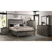 The Wade Panel Bed is the perfect addition to your bedroom! This bed is the ultimate bedroom goal. The tops of the headboard and footboard feature a metal trim in a black finish. Along with the metal trim are decorative bolts, adding a little extra flair to this panel bed. This transitional style can easily pair with the existing decor in your bedroom, or it's a great excuse to completely redo your bedroom. The cool gray finish is unique and will turn your bedroom into an oasis. Add this bed to your home today to achieve bedroom goals! Please note wood grains vary piece by piece and will not look exactly like the picture. CP0908