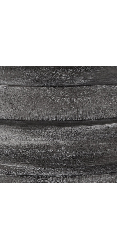 With this table lamp, you'll find an expert balance of modern design and casual function. Its distressed black faux wood finish captures the essence of natural motifs while maintaining a curated sense of character. What an artistic approach to everyday illumination.