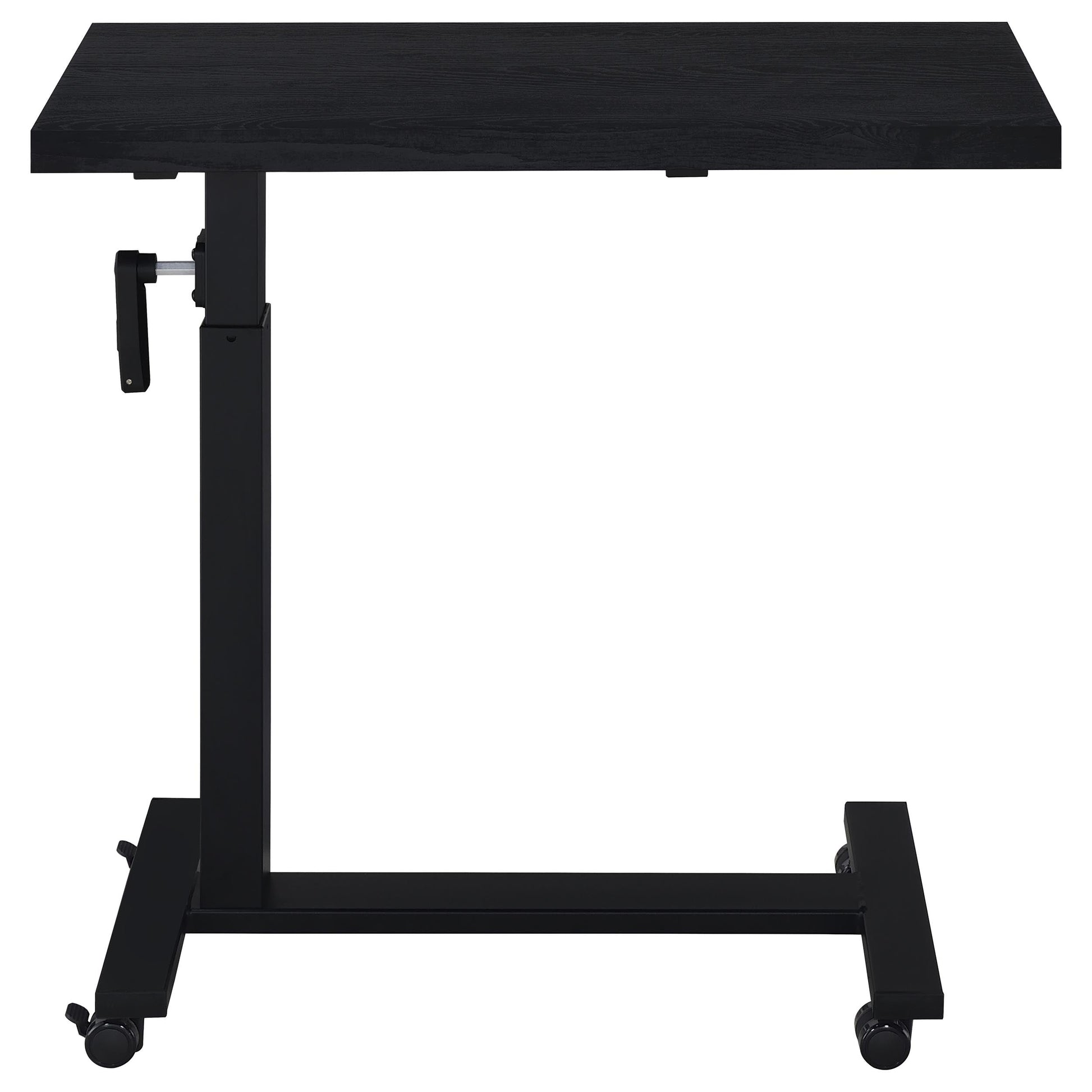 Transform your bedroom into a functional retreat with this height-adjustable C-table, designed specifically for use while reclining in bed. The 28-inch wide wood-inspired top offers ample space for working, dining, or reading. Featuring a smooth hand-crank mechanism, the table adjusts from 27 to 39 inches in height for personalized comfort. Its heavy-duty steel base, finished in a matte black powder coat, ensures durability and stability, making it the perfect bedside companion.