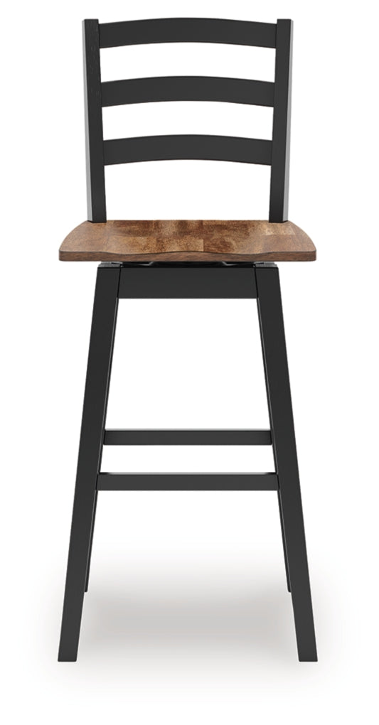 This bar height swivel bar stool dresses up your favorite farmhouse motifs with modern flair. A contoured butcher block style seat keeps you comfortable and provides a ruggedly chic contrast to the sleek black frame.