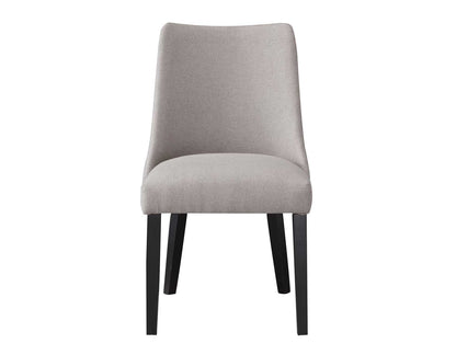 Mid-Century Modern styling in an upholstered Side Chair that softens any dining, office or guest area. A gray polyester cover is draped over a padded frame with a 1/2-inch memory foam topper and a shaped back that invites conversation long after the meal has been served. The neutral gray cover is accented with ebony finished solid wood legs for a look that will blend in with virtually any aesthetic.