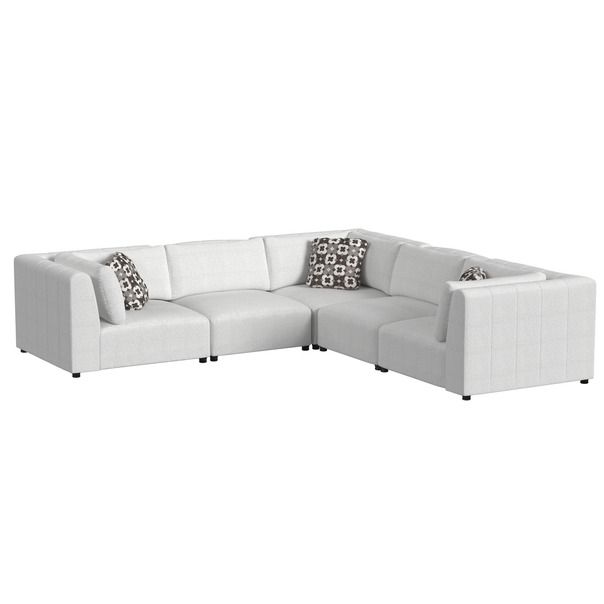 Create an outdoor oasis with the Zandara 5 Piece Modular Set in Olefin Beige. A frame fully upholstered in beige, weather-resistant Olefin fabric features decorative tufting on seat backs, creating a subtle, calming essence. Amply cushioned seating is designed to cradle you during moments or repose, while understated knife-edge cushions elegantly enhance this setÕs versatility. For a comfortable and stylish way to enhance your outdoor gatherings, the Zandara 5 Piece Modular Set in Olefin Beige delivers in quality and design.